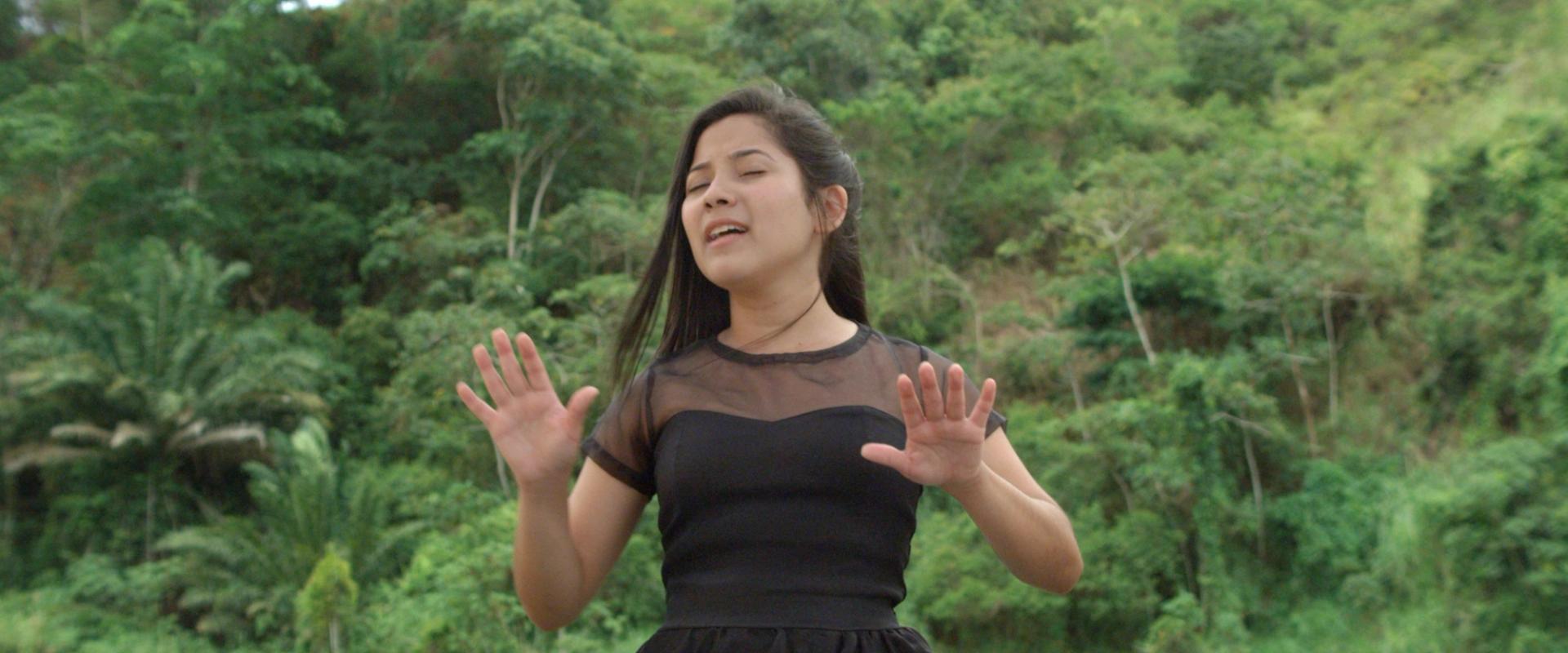 A pentecostal evangelical singer serenades about faith while surrounded by nature in Terremoto Santo, building her reverberating voice and devotional lyrics up to a crescendo. An earthquake follows, the camera moves giving the illusion of a massive tremor that makes the rock she stands on and the lake behind quiver.