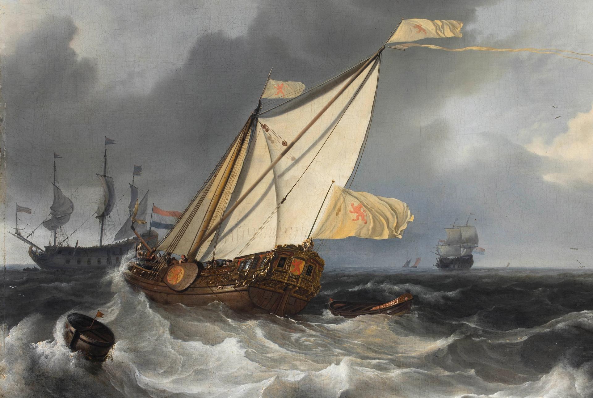 Ludolf Backhuysen's A States Yacht and other Ships on the Sea in stormy Weather (1675) sold for £730,800 to a telephone bidder at more than three times the pre-sale estimate Courtesy of Sotheby's