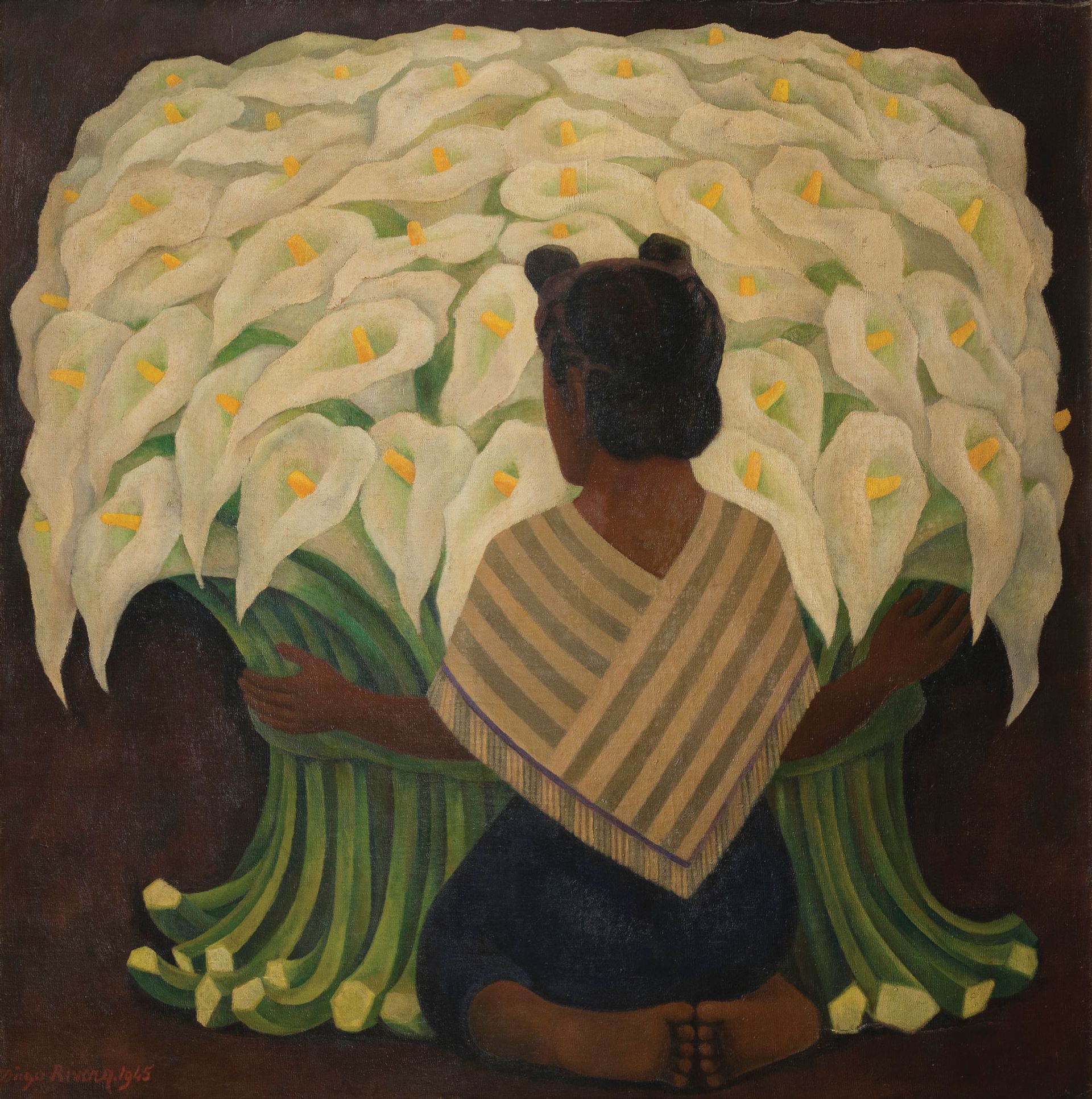 Diego Rivera's Woman with Calla Lilies (1945) Courtesy of Galeria Interart; © 2022 Banco de México Diego Rivera & Frida Kahlo Museums Trust, Mexico, D.F. / ARS, NY. Photo: Scott Cramer