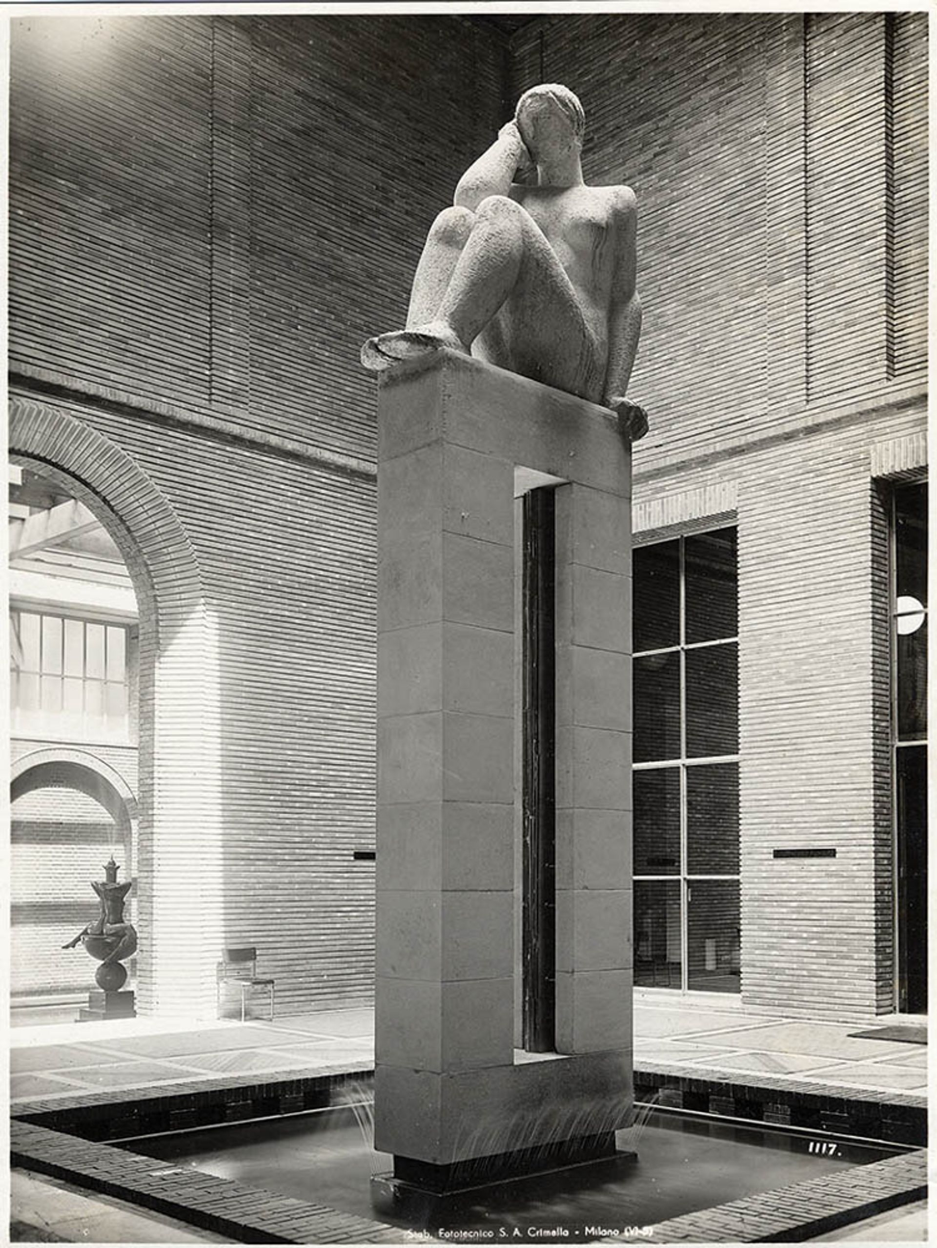 The Impluvium in Giovanni Muzio’s new-built Palazzo dell’Arte in 1933, with fountain statuary by Leone Lodi, designed by Mario Sironi. It is being recreated as the opening chapter of the triennial experience Triennale Milano—Foto Crimella