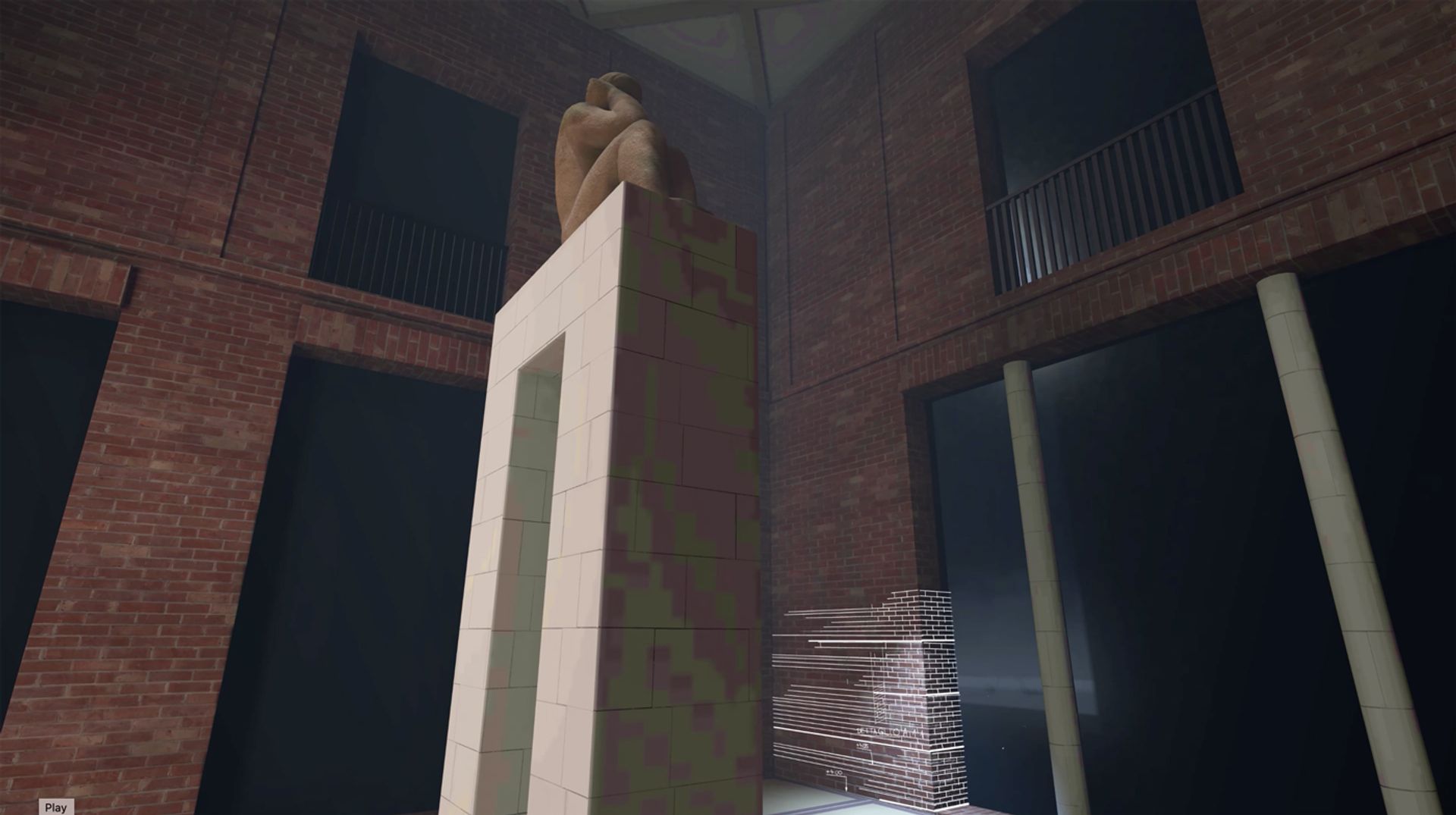 The Sironi sculpture features in a preview still from Impluvium, the first chapter of the VR experience 1923: Past Futures, produced by the Triennale di Milano with Reframe VR and Vive Arts, and inspired by the aesthetic of 1933 drawings by the architect Giovanni Muzio