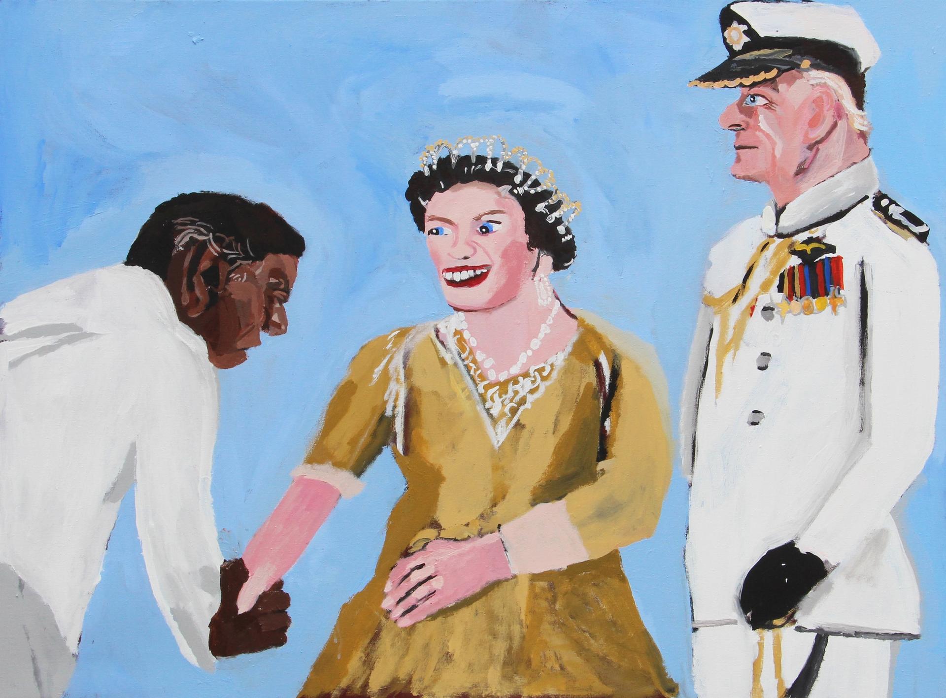 Vincent Namatjira, Albert Namatjira meets Queen Elizabeth II and Prince Philip, Canberra, 1954 (2021). Courtesy Fort Gansevoort.
