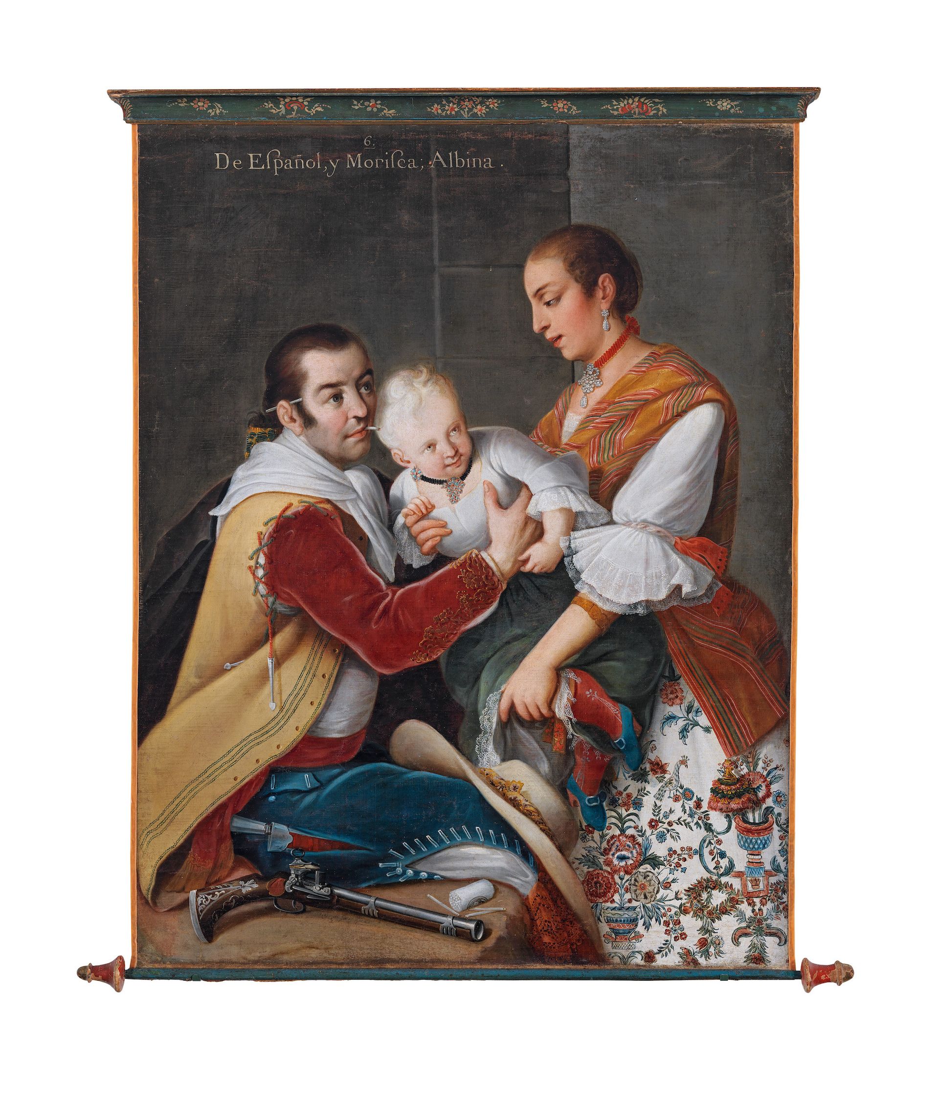 Miguel Cabrera, From Spaniard and Morisca, Albino Girl (De español y morisca, albina), 1763, purchased with funds provided by Kelvin Davis in honour of the museum’s 50th anniversary and partial gift of Christina Jones Janssen in honour of the Gregory and Harriet Jones Family © Museum Associates/Lacma