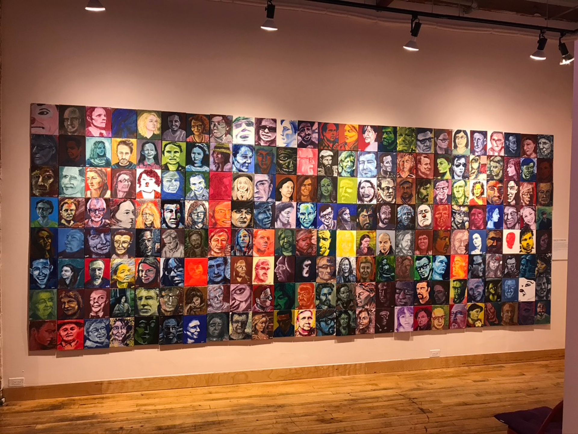 Installation view of Bruce Horak's portrait Installation at Tangled Gallery, Toronto. Michelle Peek Photography. Courtesy of Bodies in Translation/ Activist Art, Technology & Access to Life, Re•Vision/ The Centre for Art & Social Justice at the University of Guelph.