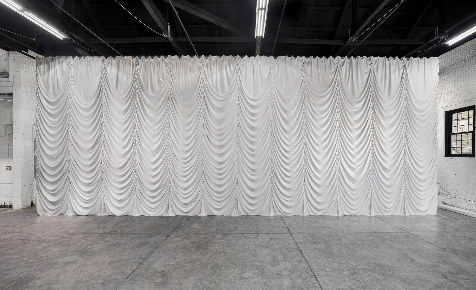 The artist-run space Elijah Wheat Showroom is hosting a site-specific exhibition of works by the Newburgh-based sculptor and performance artist Ian McMahon, who explores themes of transience and temporality in his work. The titular centrepiece of the exhibition is an undulating plaster cast theater curtain that engulfs the 3,000 sq. ft warehouse, weighing nearly 2,000 pounds and measuring 44 ft across. The work was installed last month and will collapse onto the space’s concrete floor for a performance that closes the exhibition on 24 July at 7pm. McMahon was born in Ithaca, New York, and received his BFA in ceramics from Alfred University. The gallery was founded in 2015 by the curator and writer Carolina Wheat and the artist Liz Nielsen, and operated as a space in Bushwick between 2016-2020. The Dutch Reformed Church at 134 Grand Street is also hosting a work by Nielsen titled Forcefield, in which a light composition by the lighting collective Nitemind will be projected onto the historic building from 8pm-midnight until September.