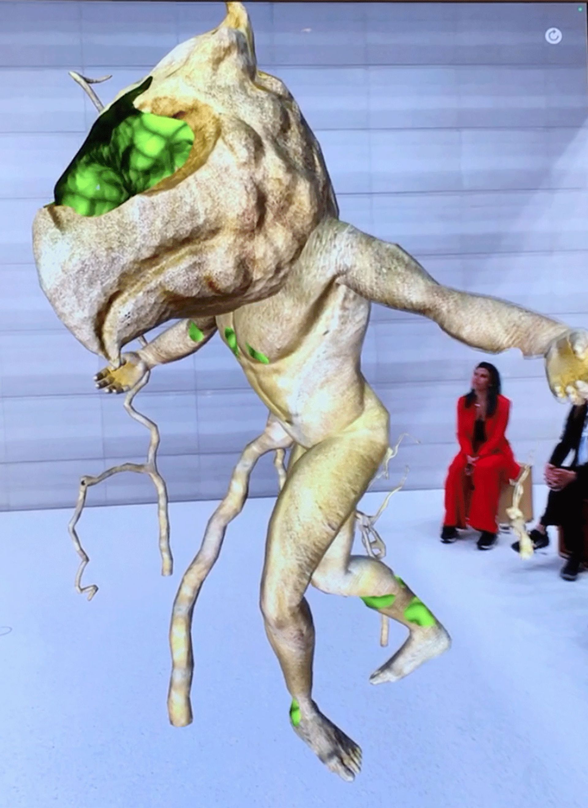 Five or six animated three-dimensional recreations of Blake's figures gyrated and flew, life size at one moment, larger at another around the Apple store's mirror-ceilinged auditorium. Suddenly, the group atomised and reappeared as a towering, solo "Flea" figure that stood around 3m tall in front of the audience. Its head transformed first into the adamantine St John the Evangelist eagle of Blake's watercolour Beatrice Addressing Dante from the Car (1824-27) and then again into the "burning bright" head of Blake's poem The Tyger (1794). A group of three serpents then looped and jived like battling kites around the dancing central figure in interlocking spirals before everything collided and shattered into fragments, releasing the audience from the grip of Blake's darkest imaginings.