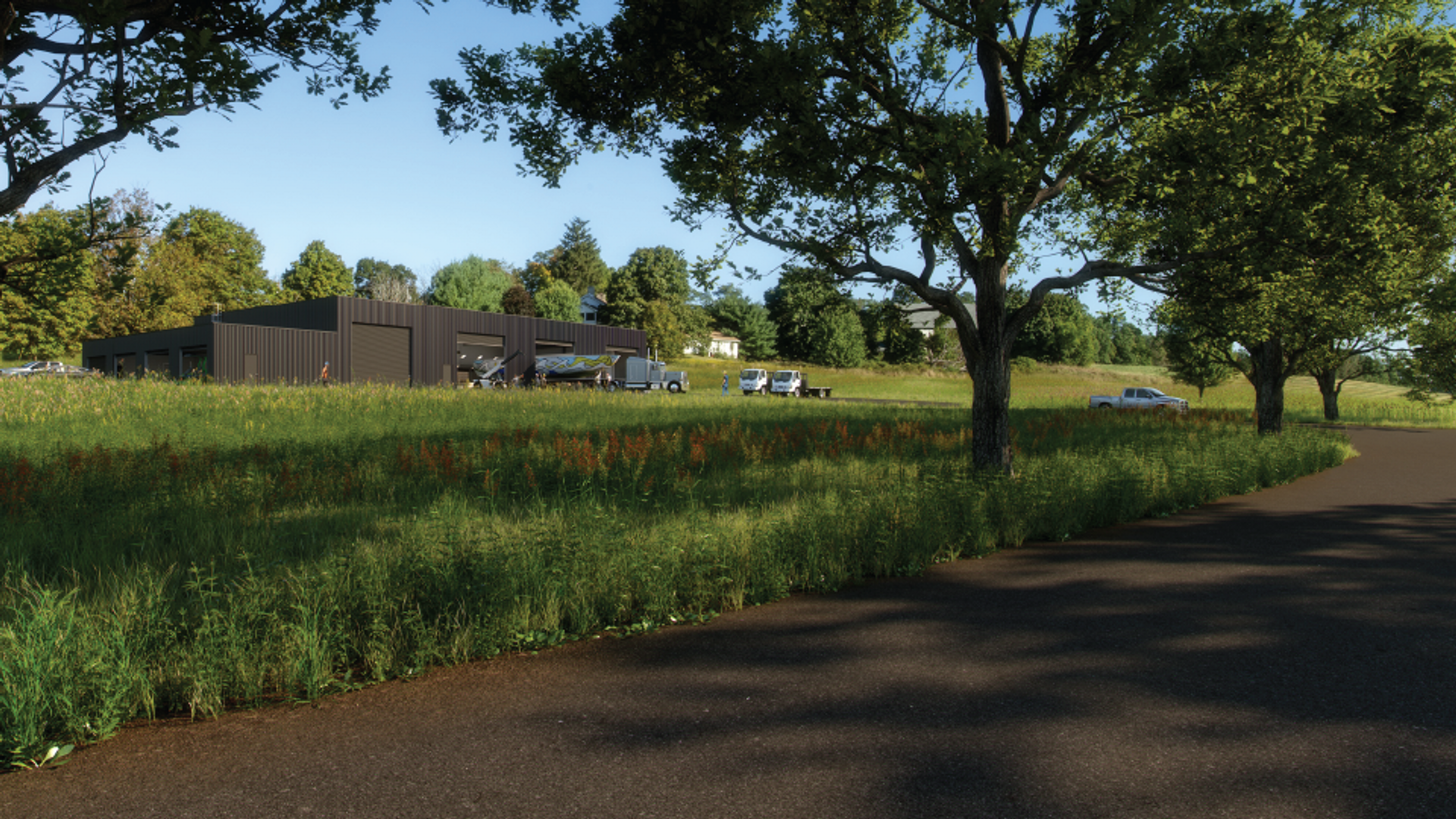 Rendering of the new Conservation, Fabrication and Maintenance Building at Storm King Art Center. © Storm King Art Center.