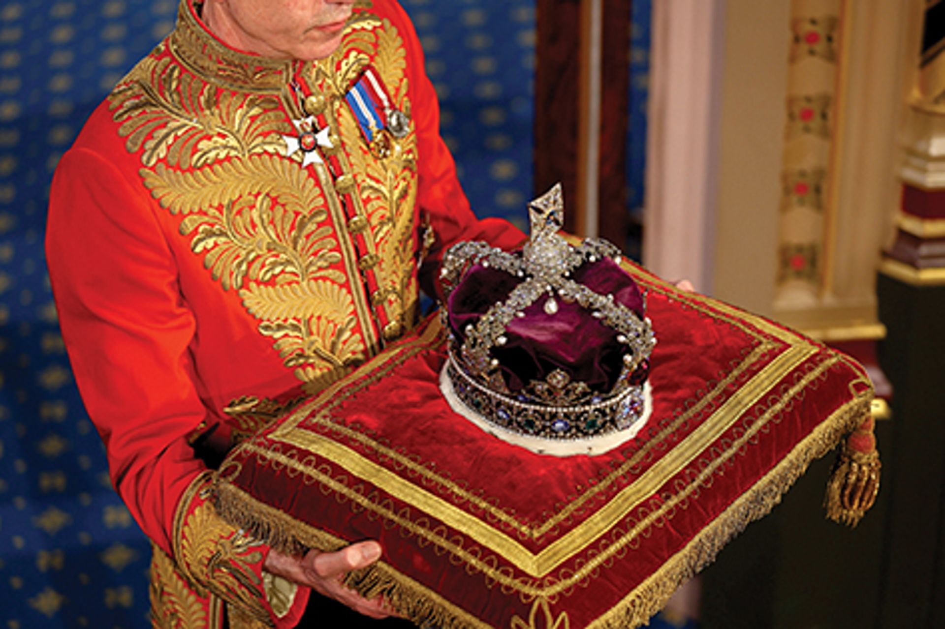 Heads up: the Imperial State Crown sits on a cushion at the state opening of Parliament in May; it will sit on Prince Charles’s head when he succeeds the Queen Hannah McKay; Reuters/Alamy Stock Photo