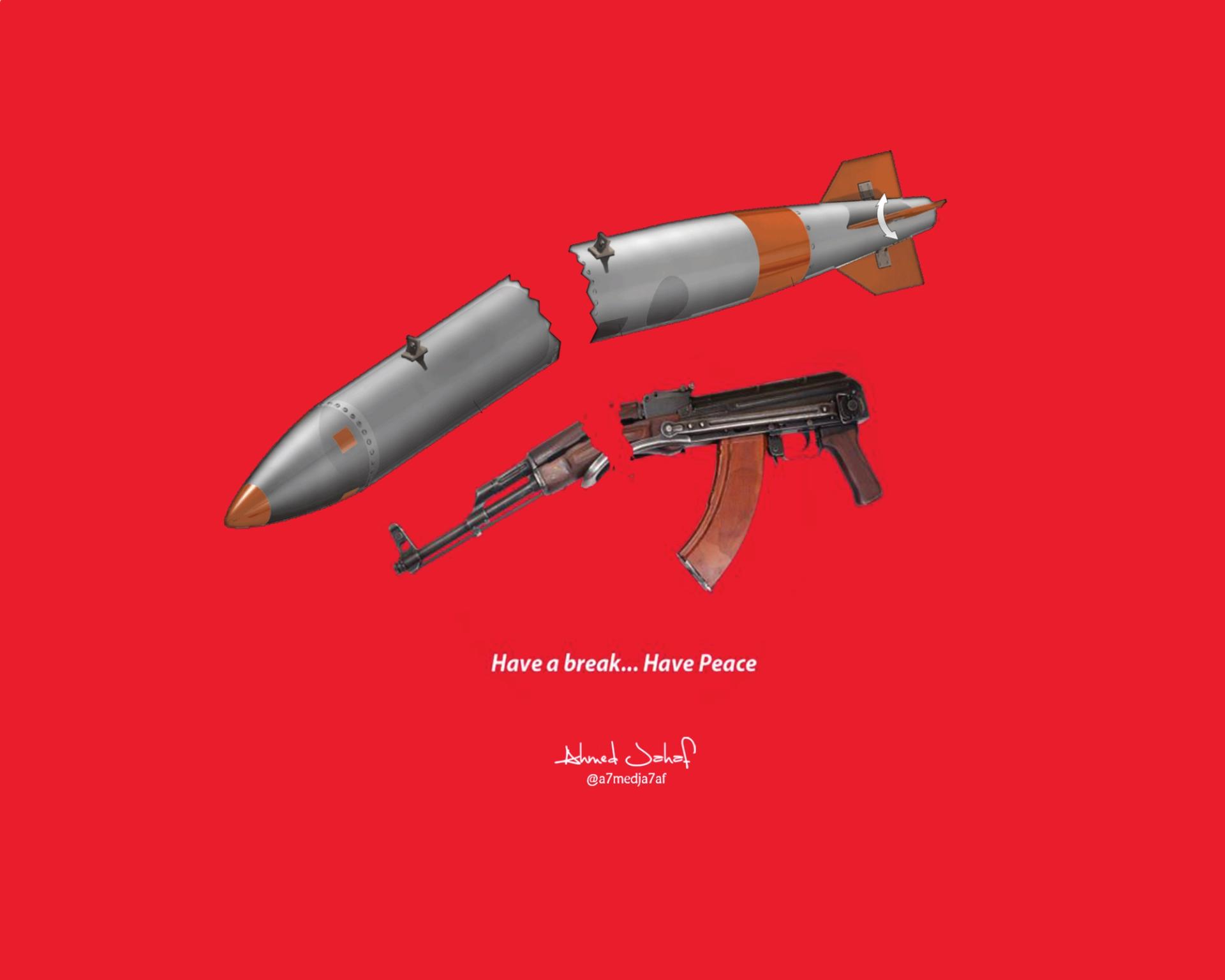 Depicting the “ignored war”: a graphic by Jahaf shows weapons breaking in two