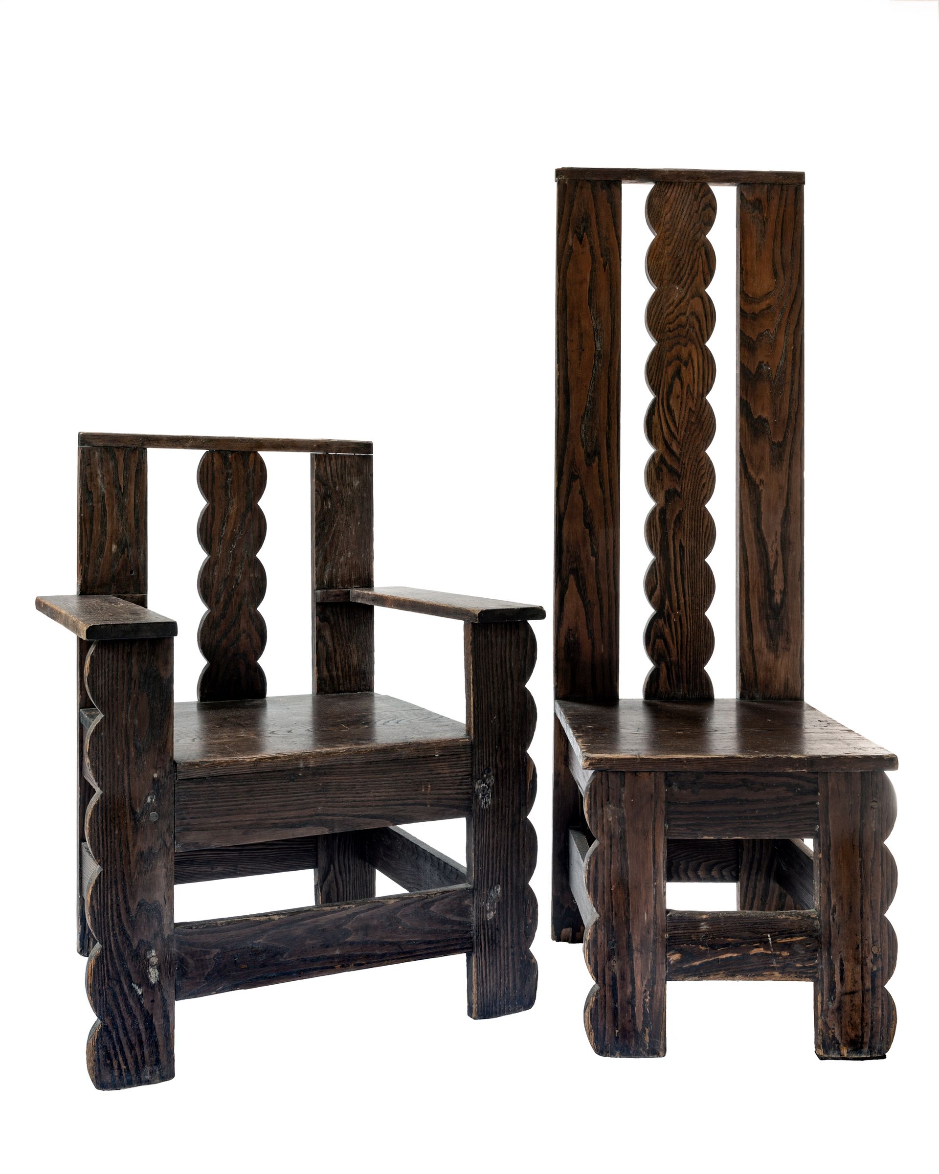 Winold Reiss, Scallop-edge low back chairs with arms and Scallop-edge high back chair (both 1914). Courtesy New-York Historical Society.