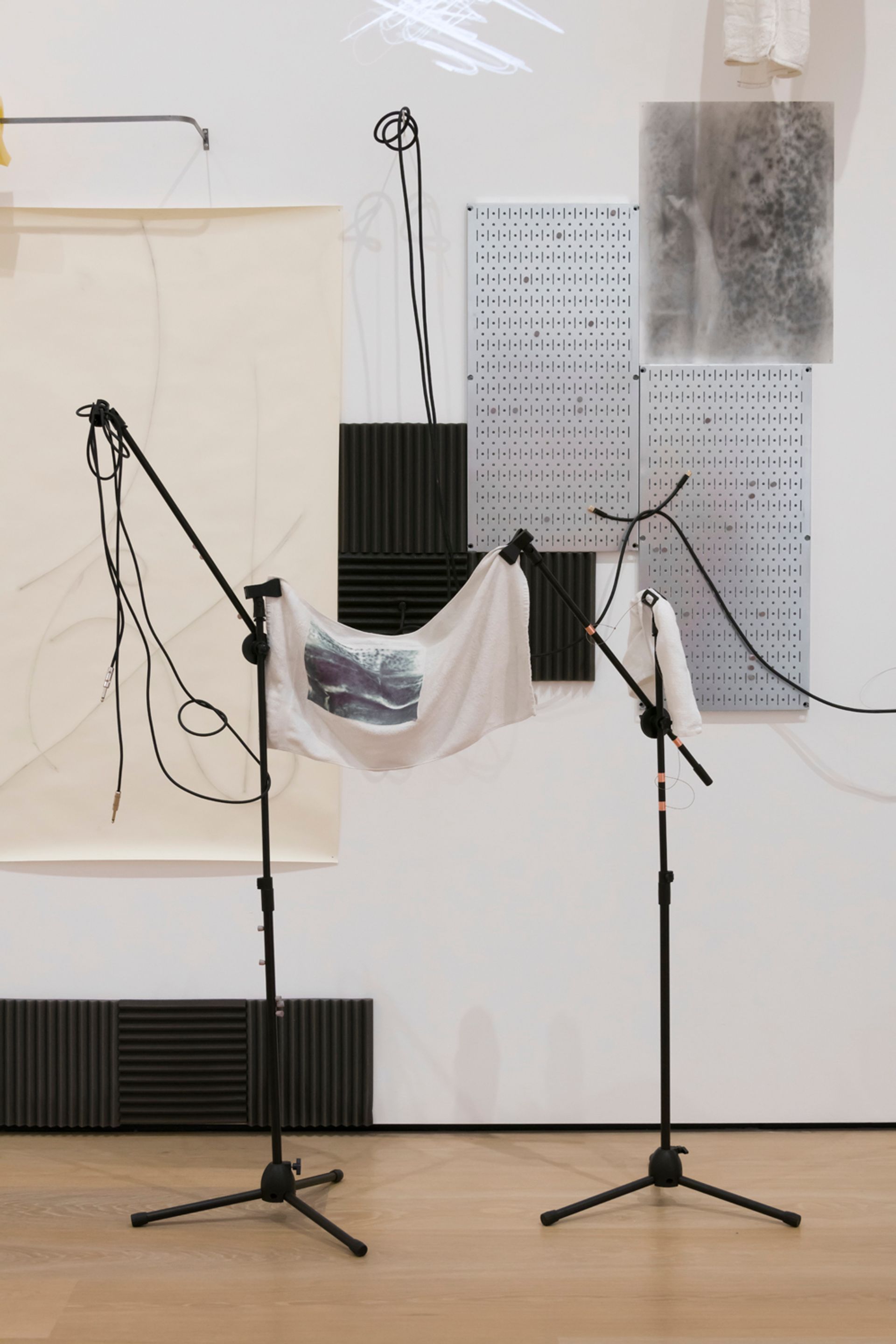 Gale studied anthropology and archaeology at Yale University; she states on her website that she “employs objects and materials like barricades, concrete, microphone stands, and spotlights to address the ways in which space and sound are politicised”. Her exhibition Riff Fatigue at Artist Curated Projects in Los Angeles in 2017 approached “the electric guitar and its role in the history of rock music as the point of departure for a meditation on histories of protest”, says an exhibition statement.