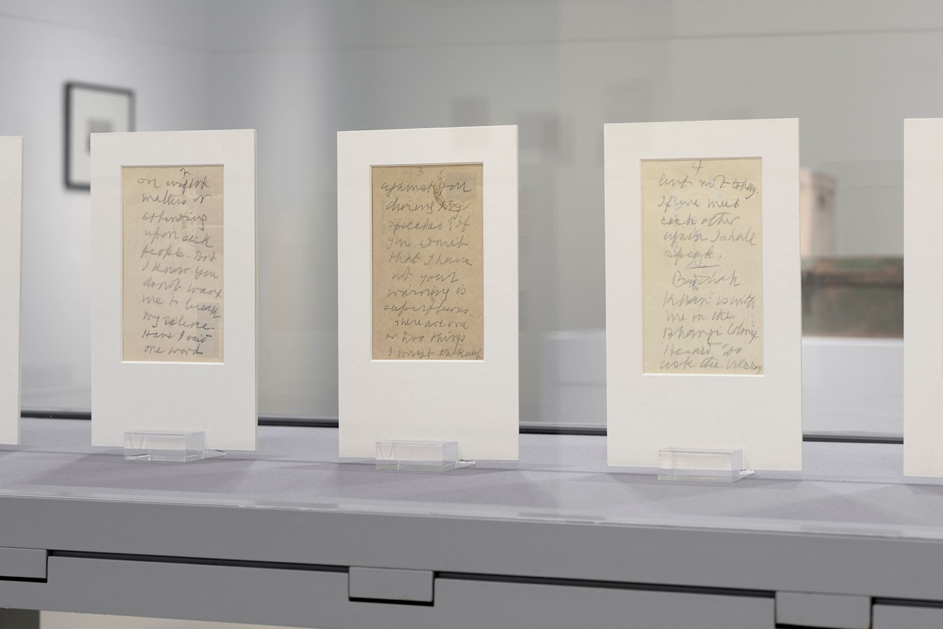These five rarely displayed artefacts now form the focal point of a contemporary art exhibition at John Hansard Gallery in Southampton. Tangled Hierarchy (until 19 September) is curated by the Mumbai-based Jitish Kallat, who was invited by the gallery to consider these letters within a group show around language, borders and loss, which coincides with the 75th anniversary of partition.