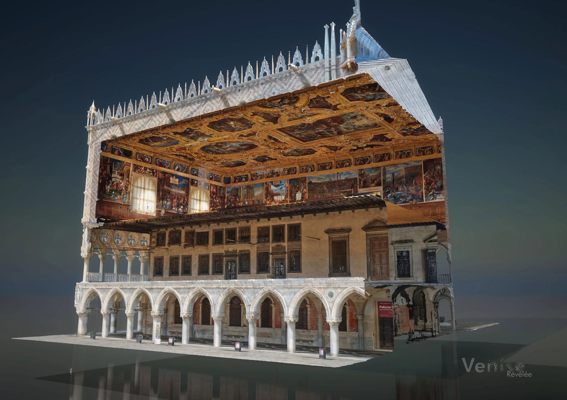 Visitors to the Venice Revealed show will be able to travel the length of the Grand Canal and explore the treasures of its most beautiful palaces in 3D. “All the images are taken from a massive 3D model, made using drones by Iconem’s team in 2021, which uses photogrammetry technology to reconstruct the entire city in volume. This virtual world uses thousands of points to reconstruct the urban space, the architecture of the palaces and the details of the paintings inside them with great precision,” say Grand Palais officials in a statement.