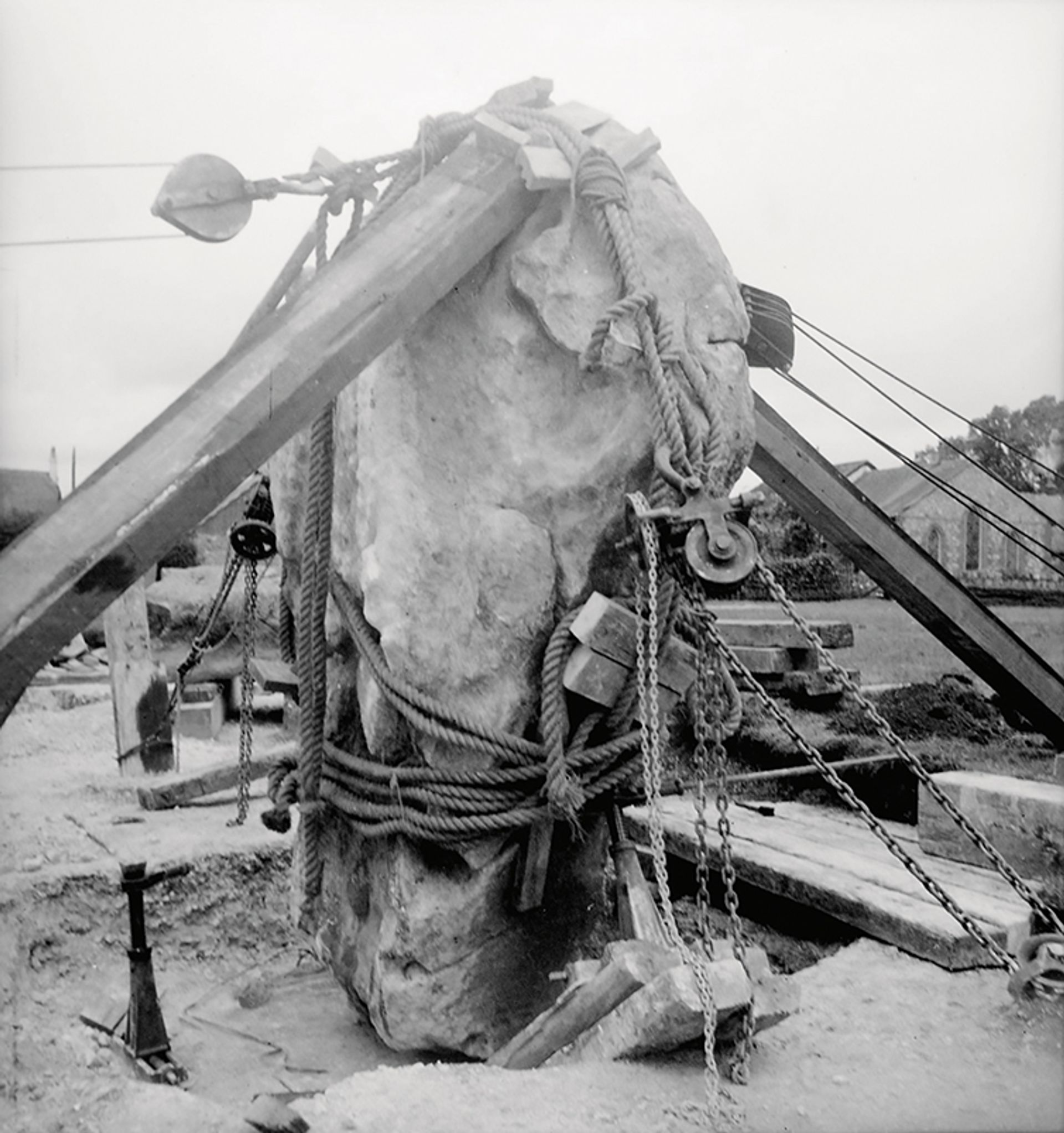 Photograph of a stone being reset (date unknown) by Eileen Agar