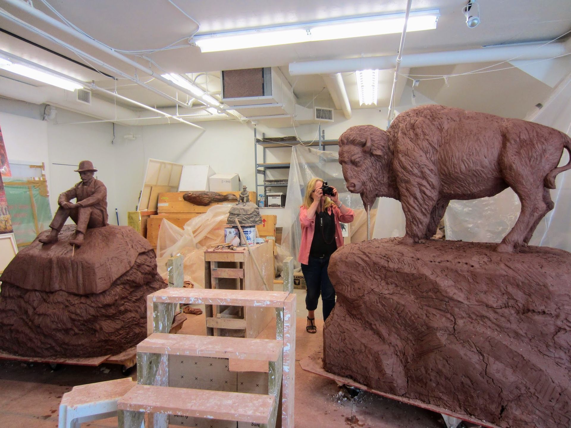 Clay models for Ken Lum's sculpture The Buffalo and the Buffalo Fur Trader (2016) in the artist's studio Courtesy the artist