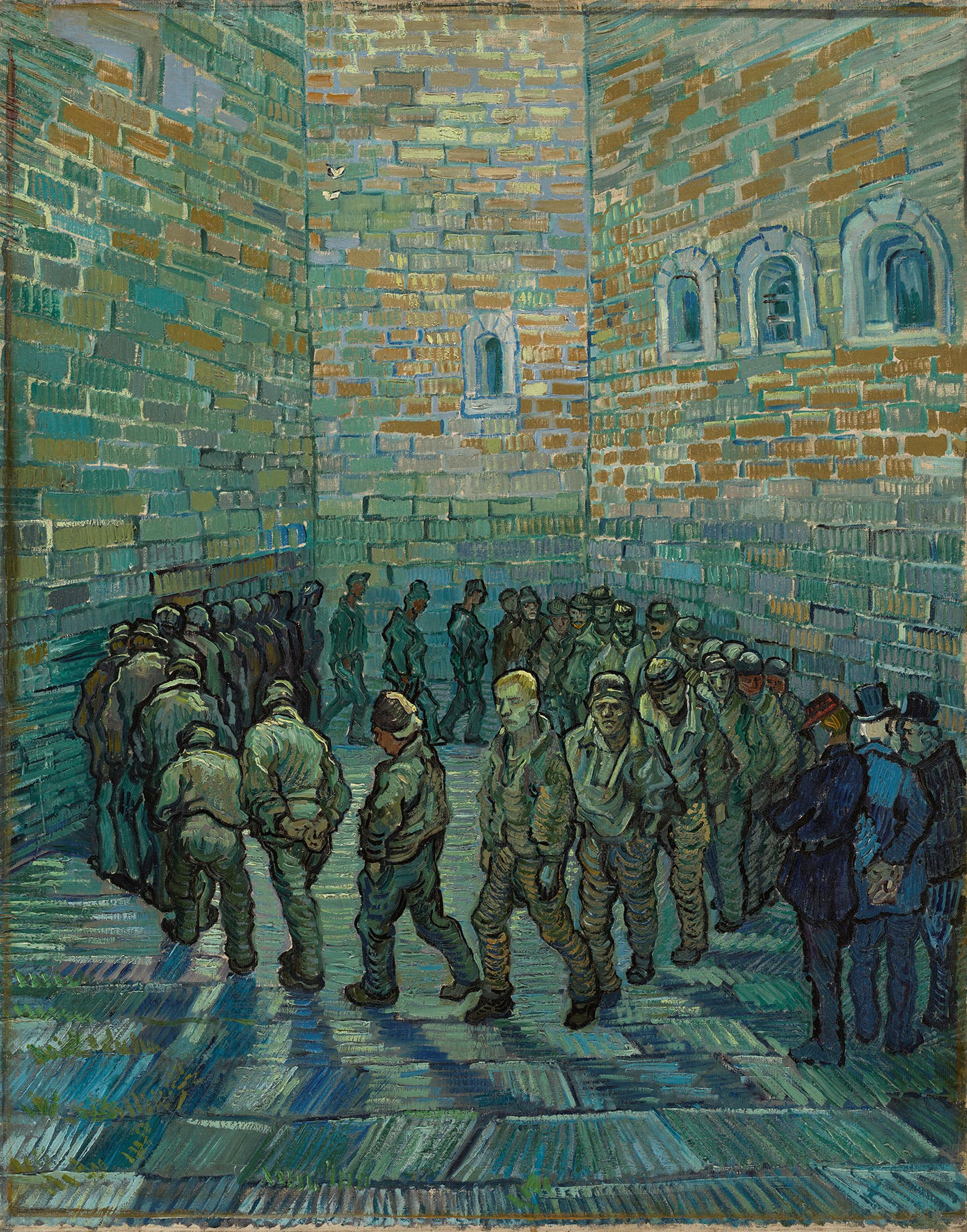 Prison Courtyard (February 1890) is a coloured version of a smaller black-and-white print by Gustave Doré, which had originally been published in the book London: A Pilgrimage. The individual print which Van Gogh chose to reinterpret in colour was Newgate—Exercise Yard. It is no coincidence that it is a prison scene, painted by Van Gogh when he was confined in the asylum.