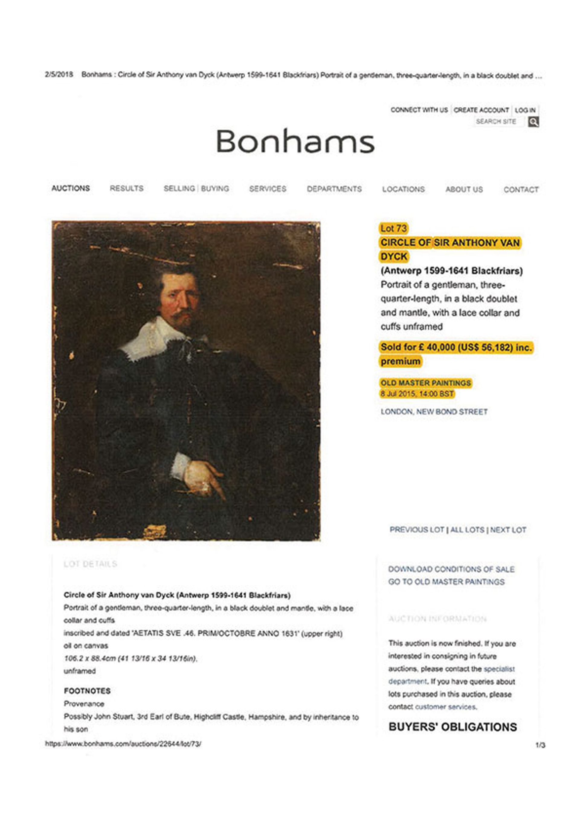 Bonham’s online record of a portrait it described as “circle of” van Dyck, which Rogers attributed to the Dutch master