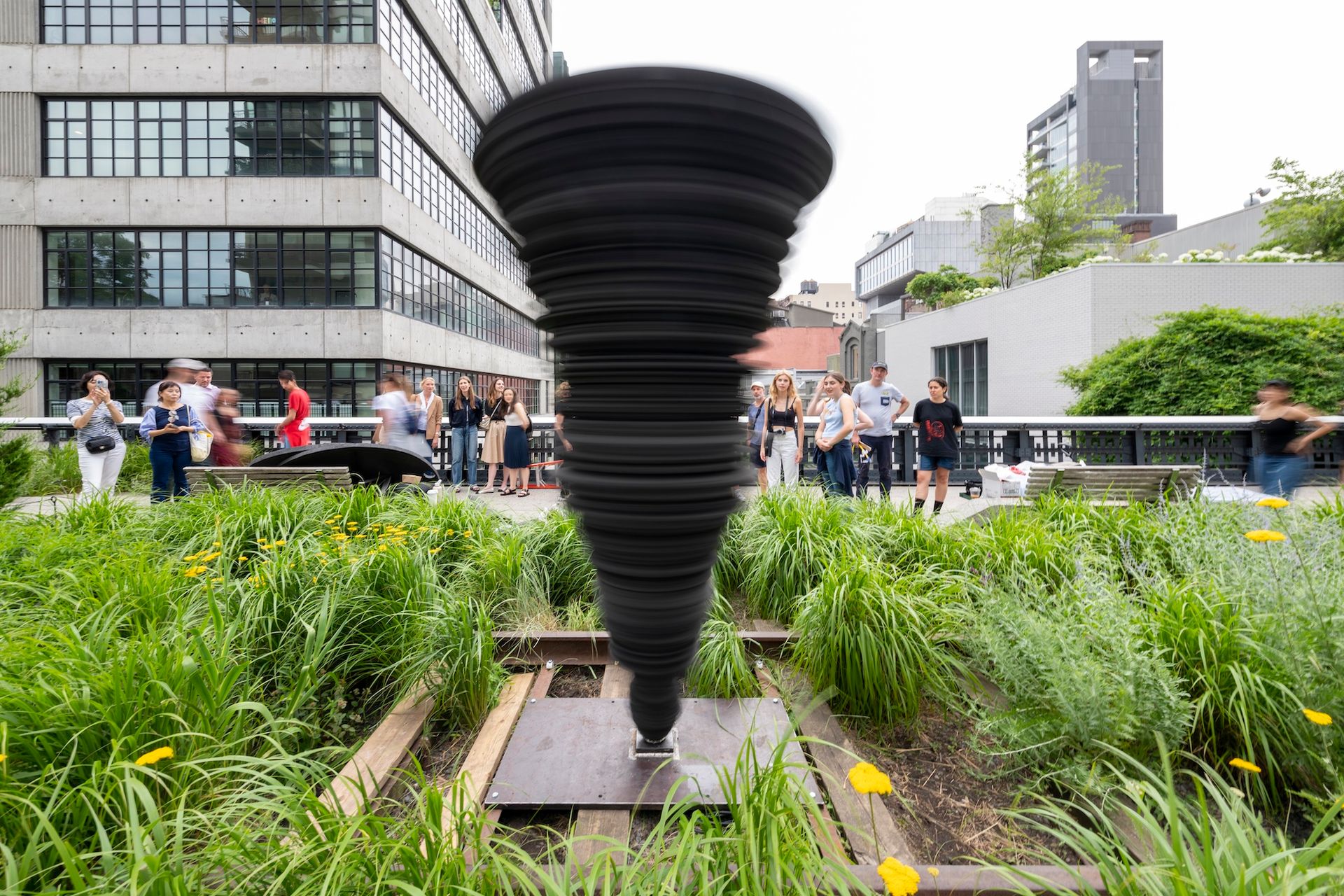 “As a moving image artist, I had to trick myself into making sculptures,” she said during the panel. The resulting whirlwind is both comic and alarming, which are overriding sentiments in Bennani and Barki’s videos about a global emergency seen through the eyes of two bewildered lizards. Similar to the videos' broad appeal, Bennani is pleased about the wide range of viewers encountering her High Line sculpture: “Audience is fun to think about, especially since so many people see Windy with no context—I enjoy being tagged in many self-help memes as people use the tornado as a metaphor for chaos.”