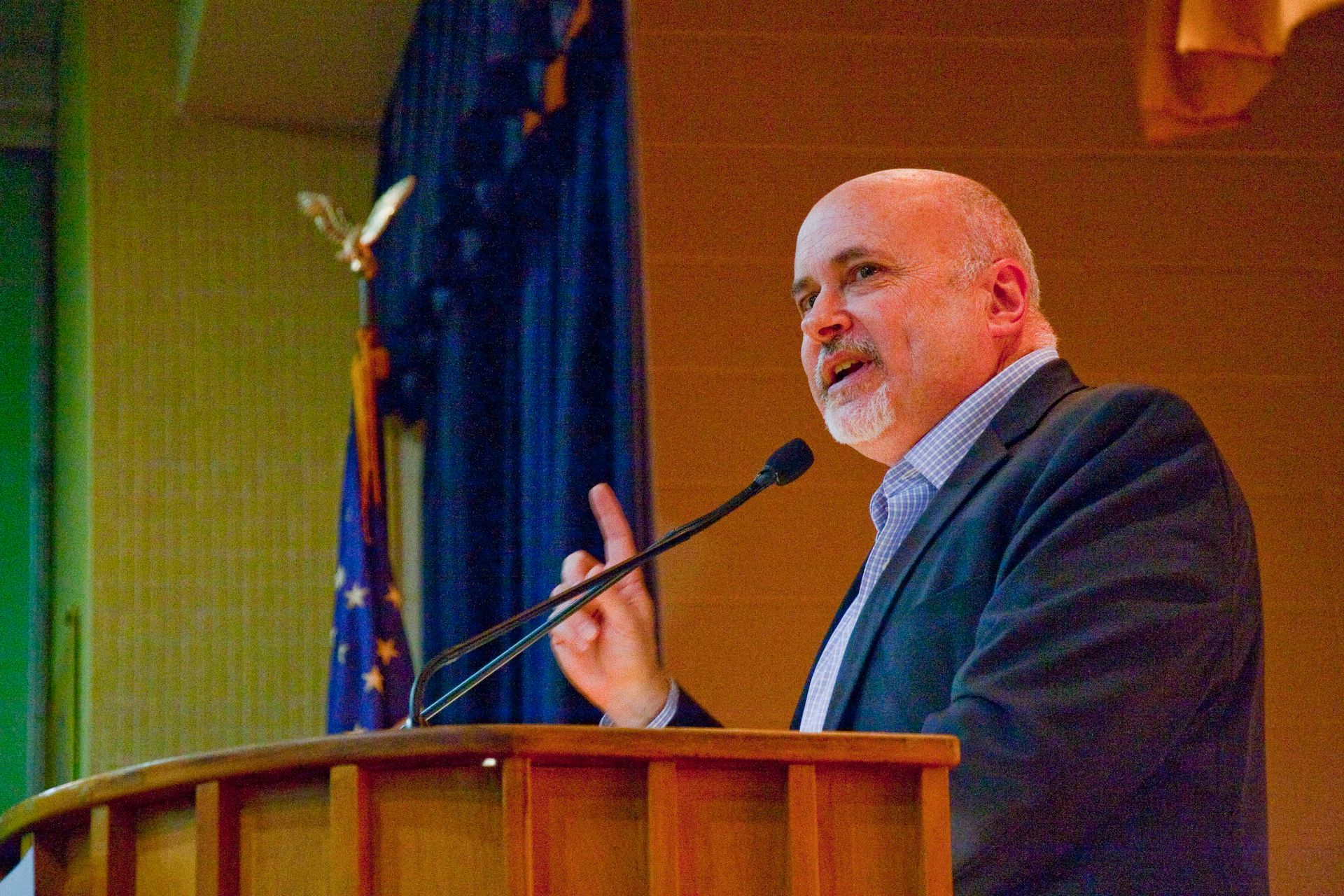 US Representative for the 4th district of Wisconsin, Mark Pocan, speaking at a 2018 rally. Photo by Charles Edward Miller, via Wikimedia Commons