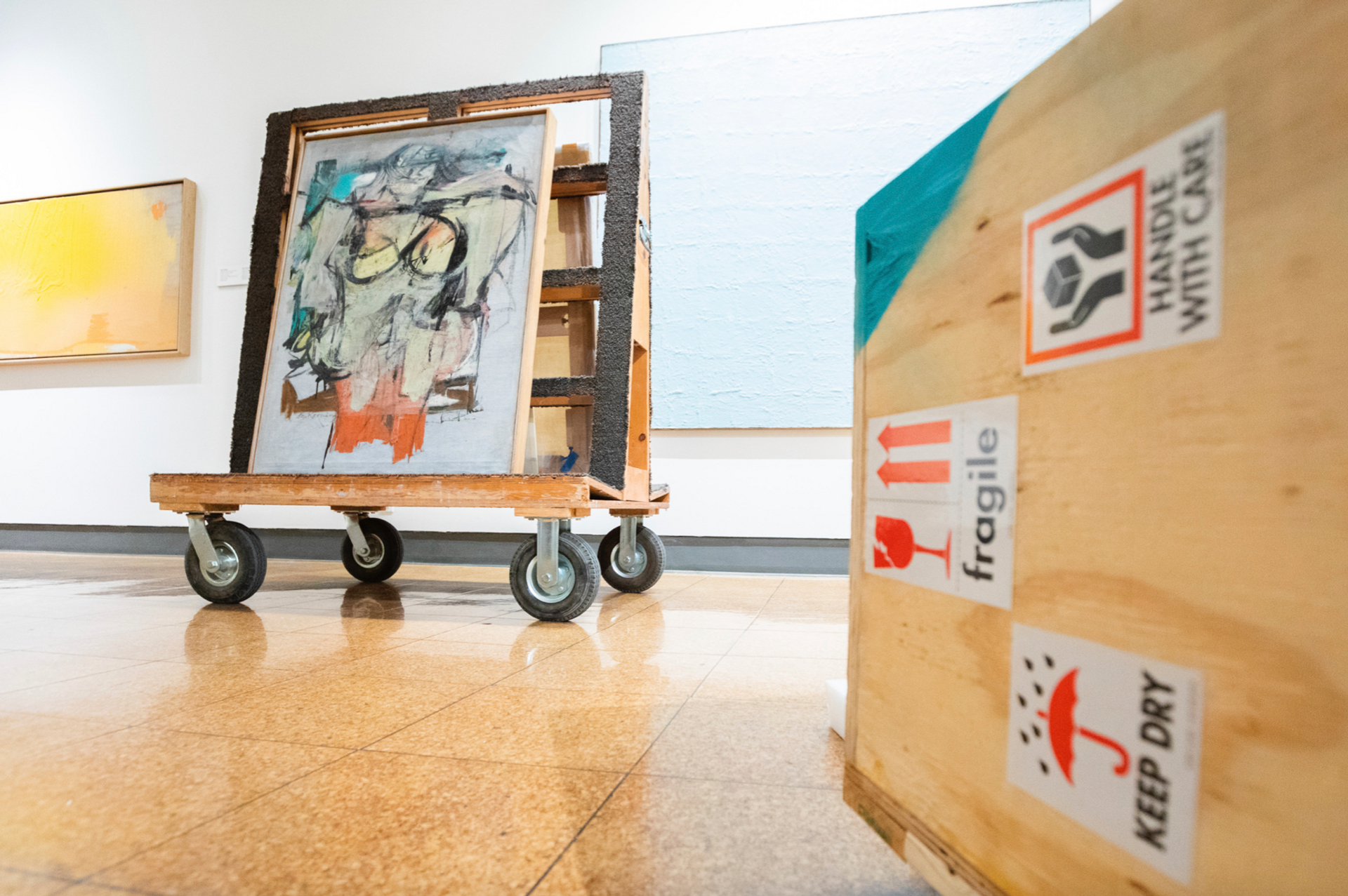 Woman Ochre after arriving to the University of Arizona Museum of Art. Courtesy University of Arizona Museum of Art.