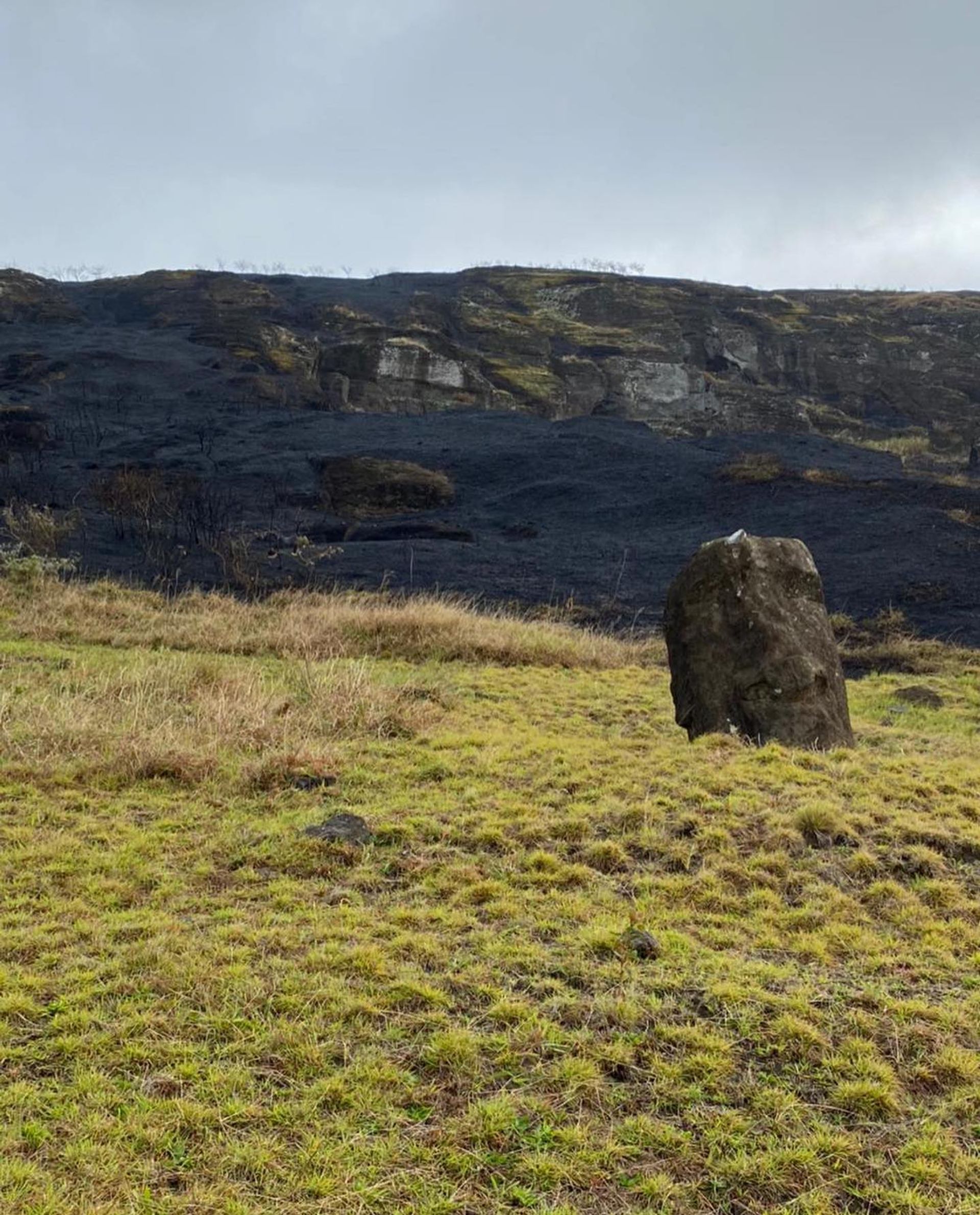 A potentially deliberate wildfire on Easter Island has wrought irreparable damage to the ancient moai head statues that dot the landscape of the Rapa Nui Natural Park, near the island’s Rano Raraku volcano, which is a designated Unesco World Heritage Site.