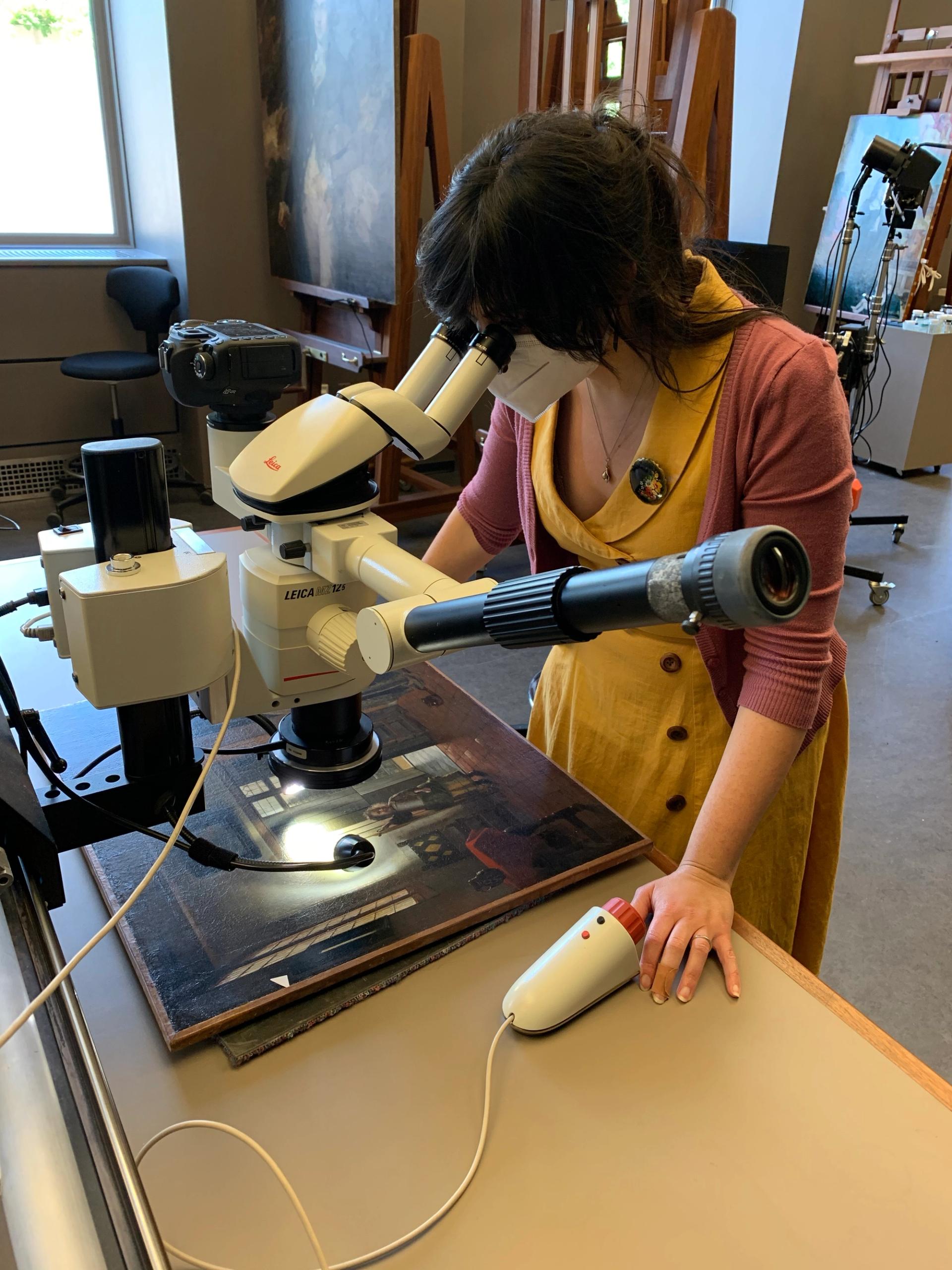 Dina Anchin, associate paintings conservator at the National Gallery of Art, studies a painting. Courtesy of National Gallery, Washington, D.C