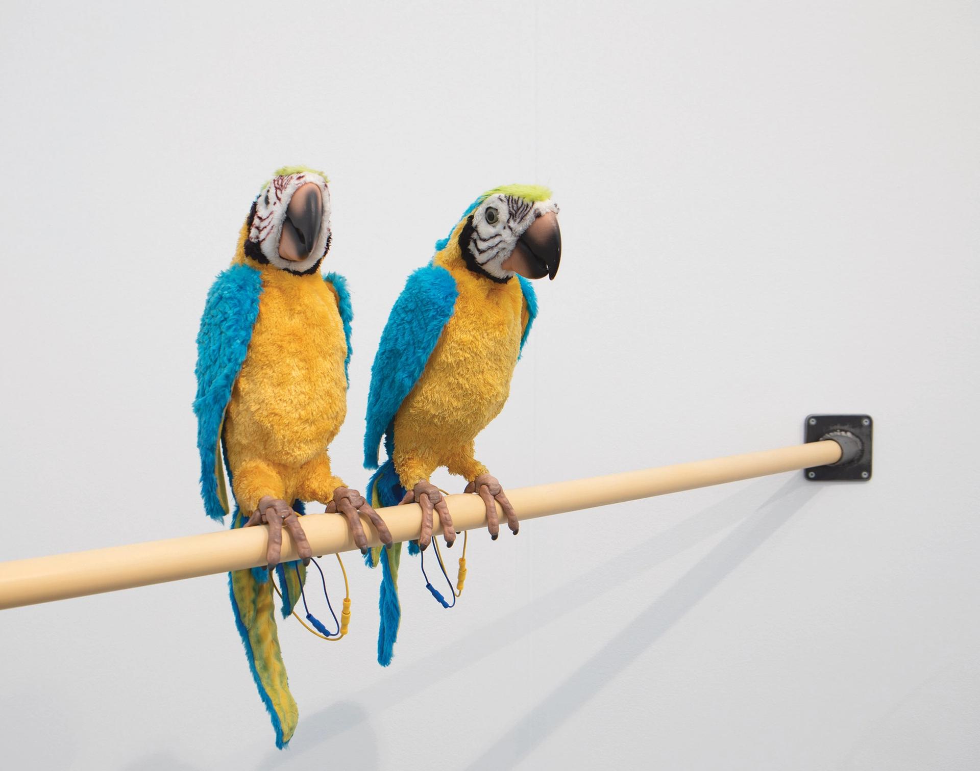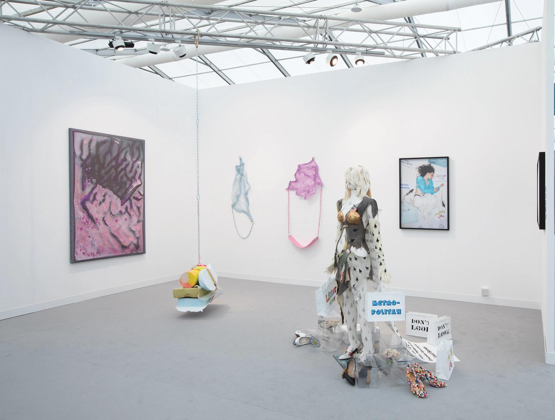 Anyone remember Squawkers McCaw? The animatronic parrot was launched in the mid-2000s by Hasbro—a life-size toy that would talk, eat toy crackers and even sing and dance. German artist Gerrit Frohne-Brinkmann has gathered a cluster of rather sorry-looking Squawkers on internet auction sites. Sitting on metal “branches” across the stand, damaged and soiled (the installation is called Dirty Parrots), they still shuffle, flap their wings and flutter their eyes but seem somewhat chastened amid the Frieze hubbub. Apparently, they also utter remembered statements from previous owners, but I only heard the occasional, muted caw. Of course, they’re a symbol of technological progress—clunky anachronisms compared to today’s virtual cute companions. Corralled in this mini-zoo, they are a rather elegiac presence.
