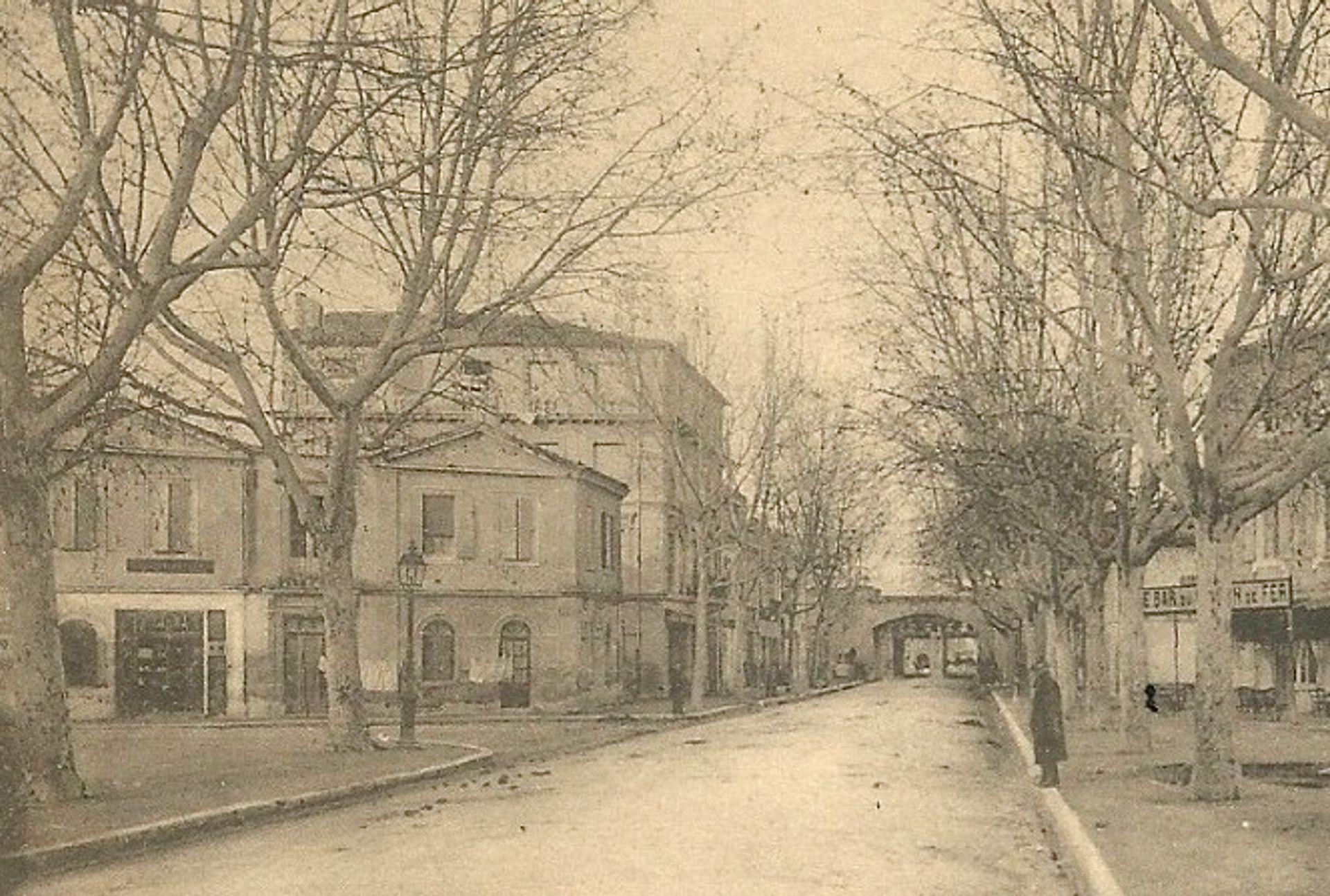 Postcard of Place Lamartine and Avenue Montmajour, showing the Yellow House (the small building behind the lamppost) (around 1905)
