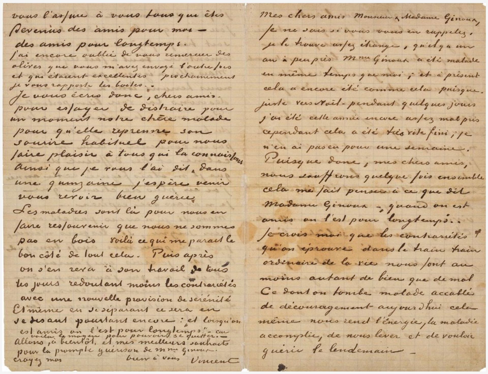 Van Gogh’s letter to Joseph and Marie Ginoux, 20 January 1890 Credit: Drouot Estimations, Paris