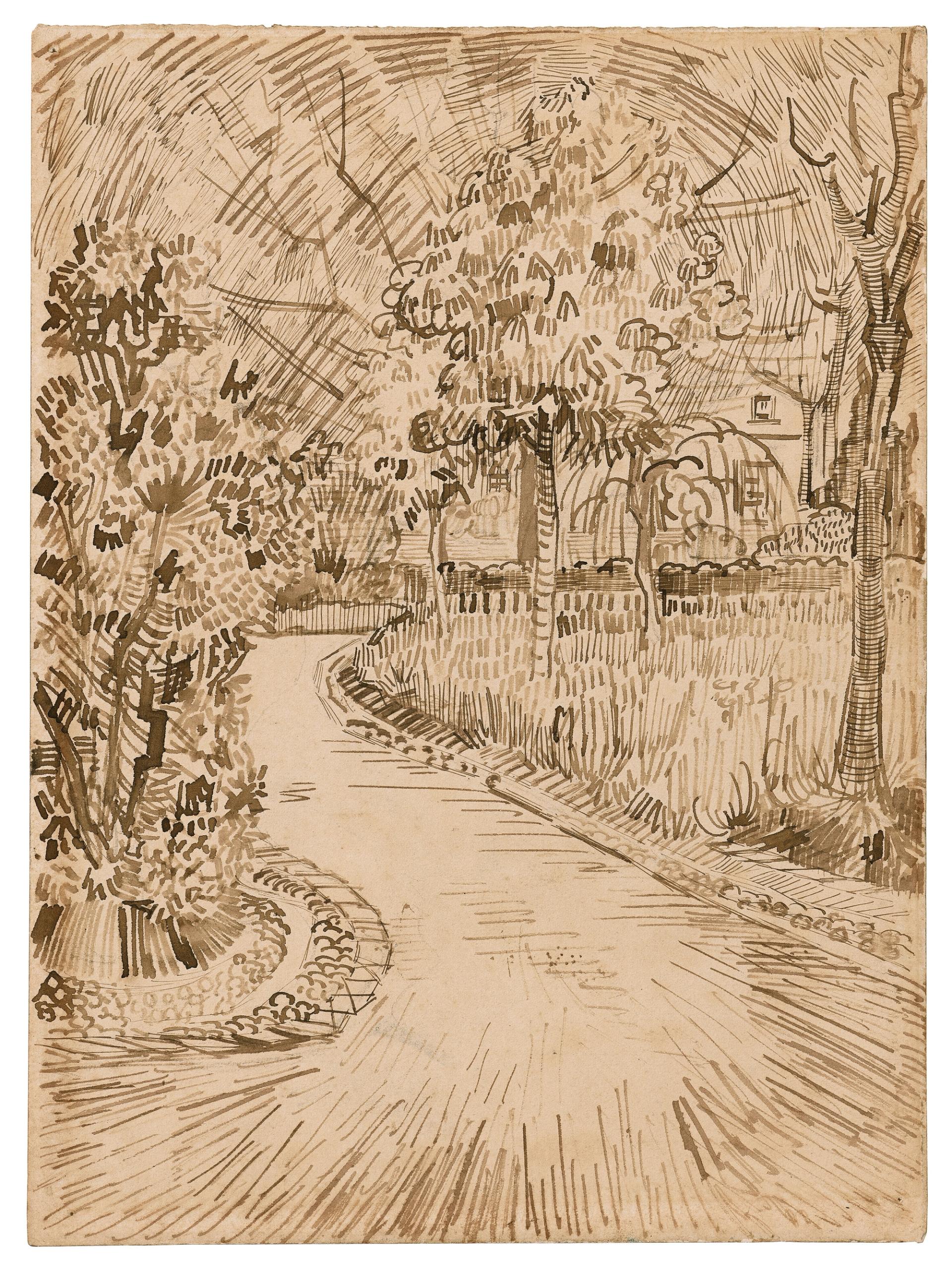 An astonishing story lies behind one of Vincent van Gogh’s distinctive reed-pen sketches, which will be auctioned by Christie’s in New York on 9 November. Park at Arles with a Corner of the Yellow House (April 1888) is estimated at $3m-$5m.