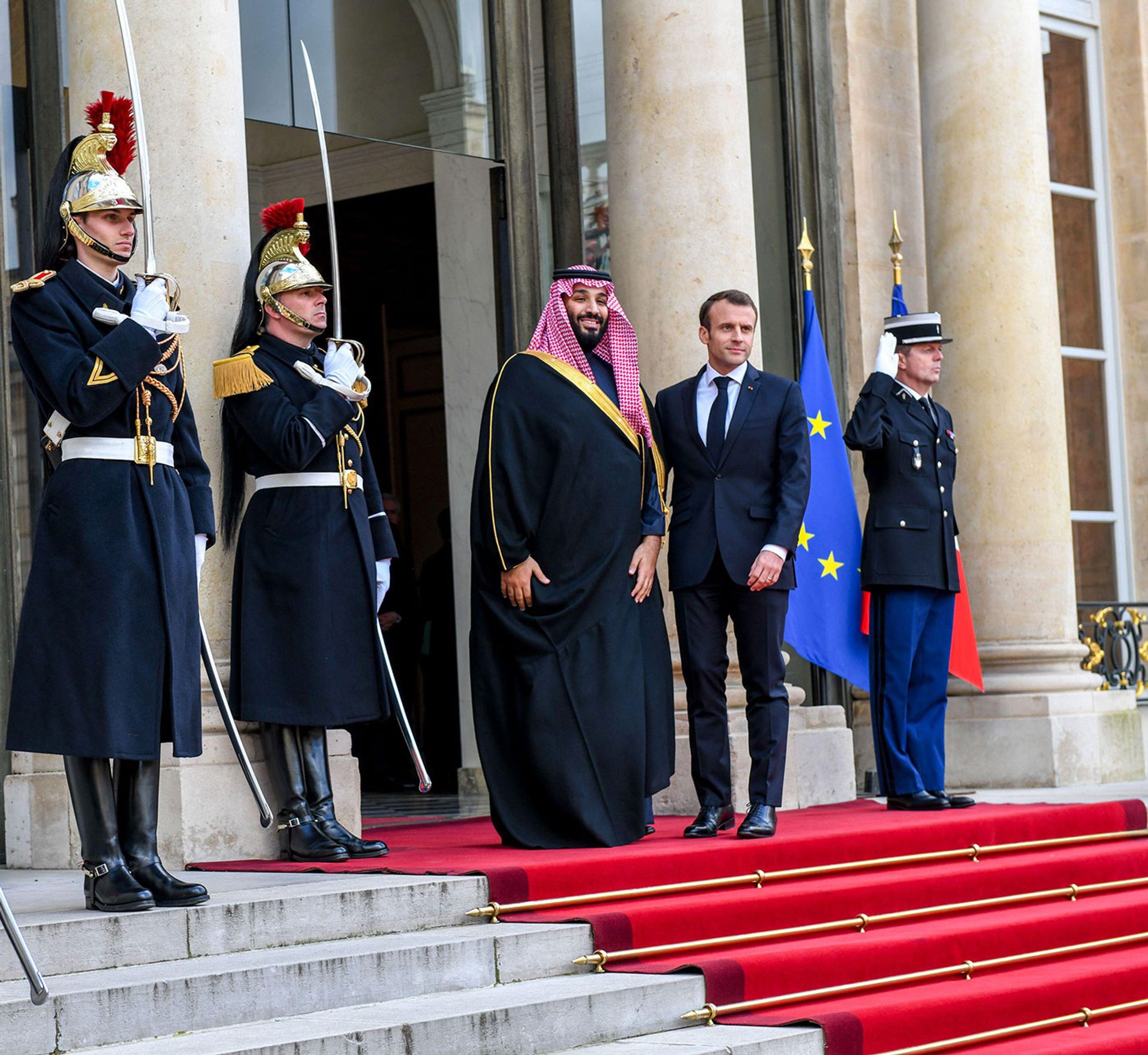 Close economic and political relationship: Mohammed bin Salman with Emmanuel Macron during the crown prince's state visit to France in April 2018 when 19 protocols of agreement between French and Saudi companies were signed, with a total value of more than $18bn Abaca Press / Alamy Stock Photo