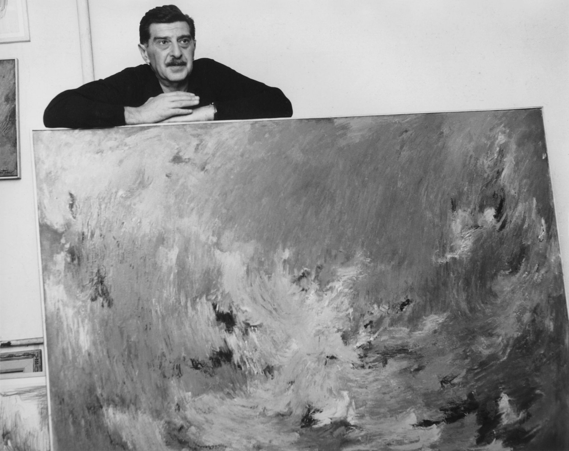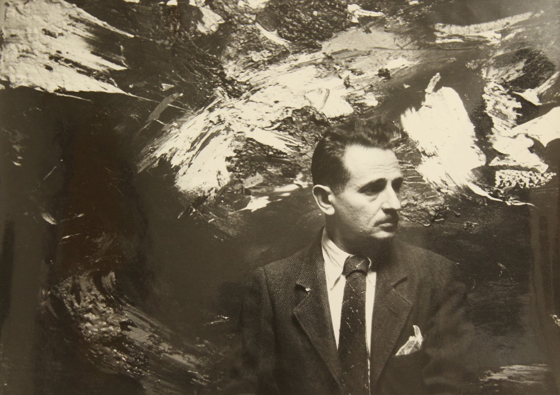 Albert Kotin with painting, around 1958, detail Photograph by Hank Shulman. Copyright © Hank Shulman