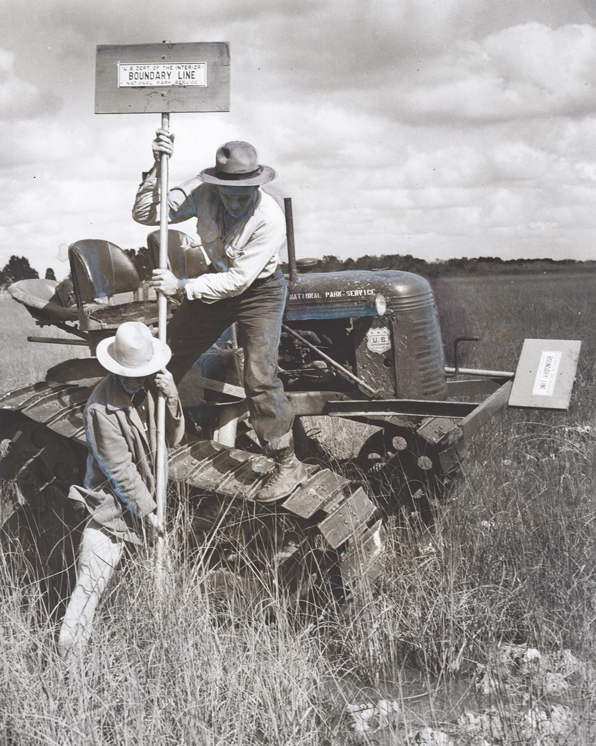 Park rangers use a modified tractor to access remote parts of the then newly established Everglades National Park.