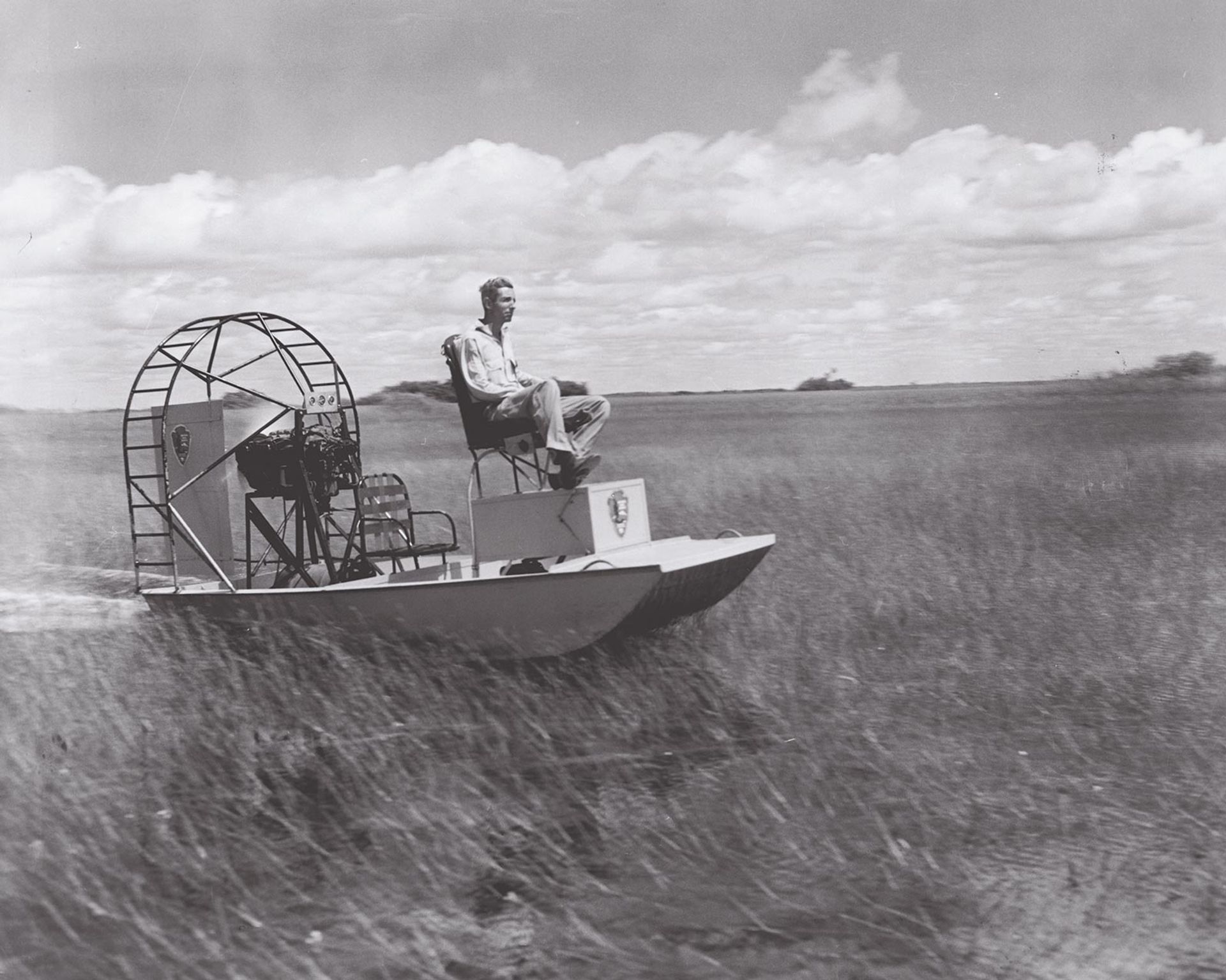 Airboat on sawgrass prairie, around 1960