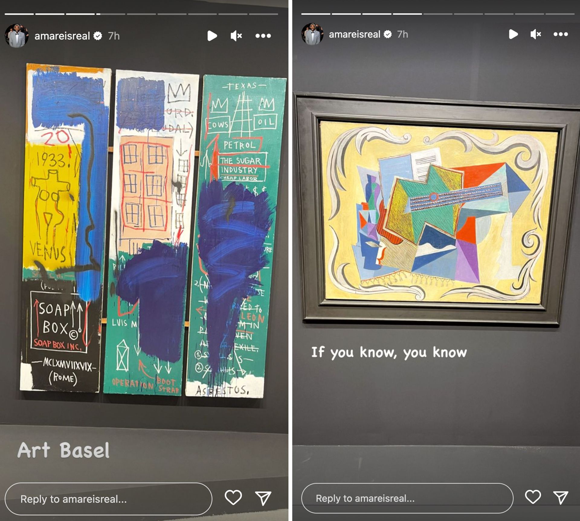 The former professional basketball star Amar’e Stoudemire posted image from Art Basel Miami Beach in his Instagram Stories