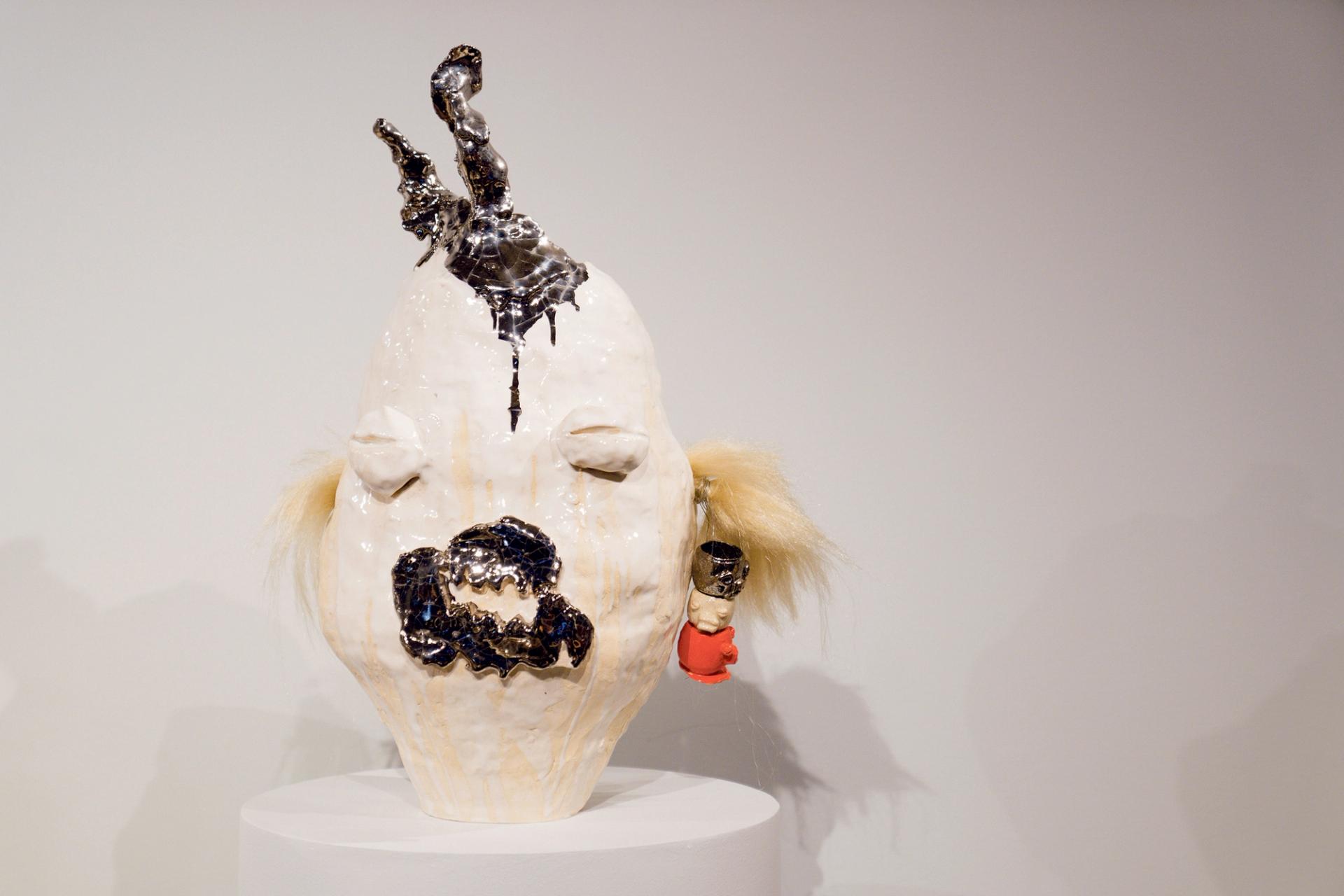 Los Angeles-based Similu makes ceramic sculptures about her experiences of motherhood and pregnancy, returning to the themes of facial pareidolia and her West African origins to ground her mask-like pieces.“The work is past, present and future happening at the same time,” says Future Perfect's sales director Kay Jaramillo, “She’s inspired by parenthood, heritage and what those two intersecting ideas mean to her.”