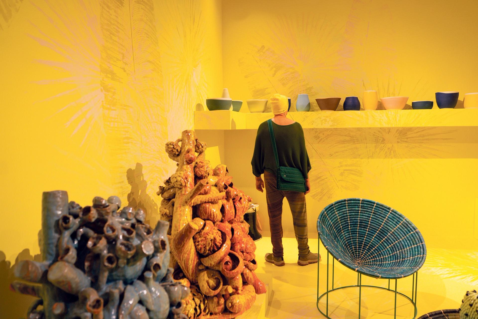 Brooklyn-based Stout satirises the trappings of domesticity with her whimsical, ribald objects, fusing traditional craft techniques with the anarchic, feminist legacy of decorative art. “I feel confident that I made the most fucked-up piece at Design Miami,” she says. “She’s an upside-down fruit lady turning into a tree. You can turn her on by touching her butt.”