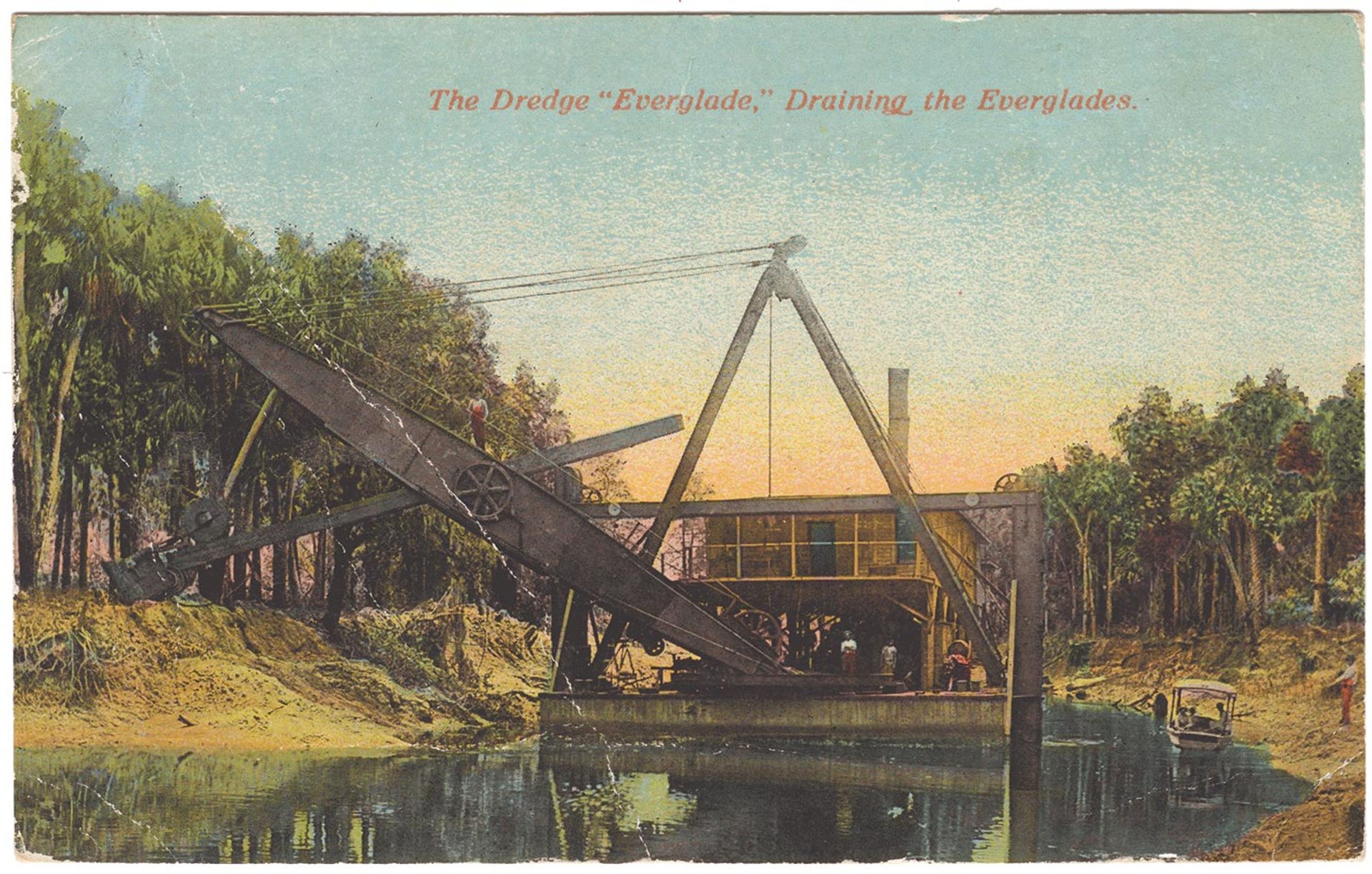 A picture showing the swamps of the Everglades being drained, around 1910, in order to create agricultural land HistoryMiami Museum