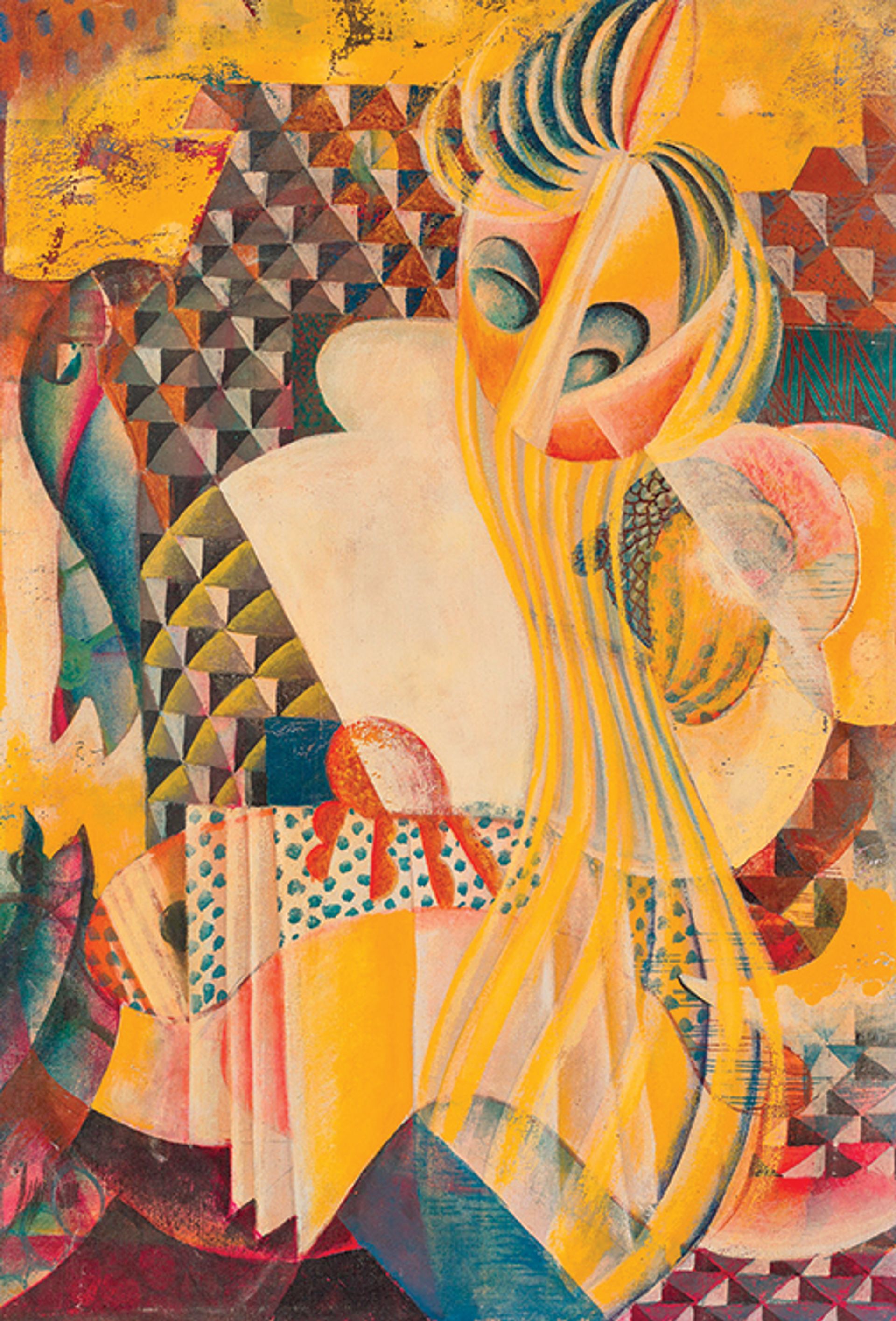 Ludwig Hirschfeld-Mack, Untitled (Seated female figure with long yellow hair) (1921/22)