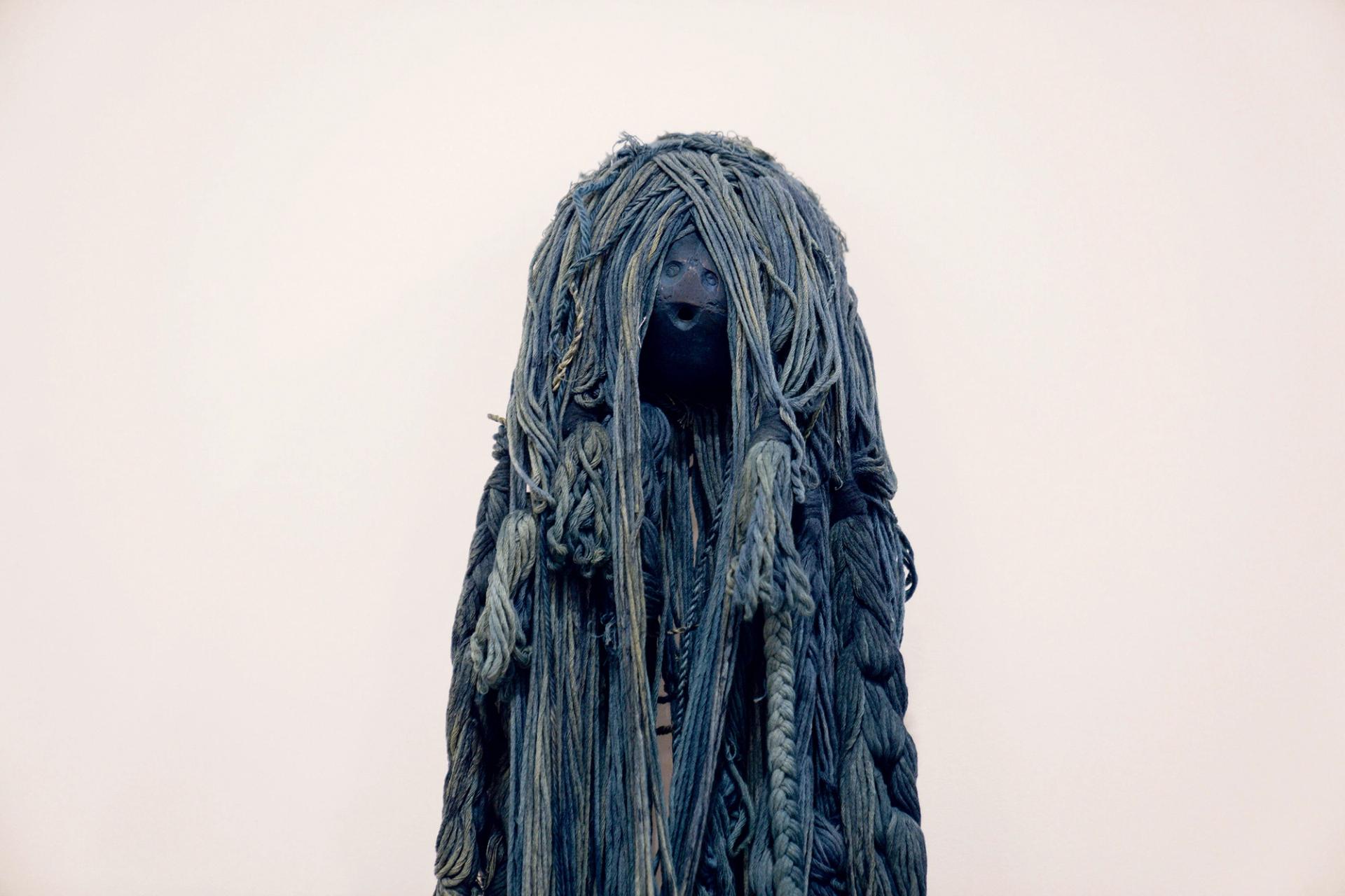 Guatemalan artist Monterroso is trying to reconnect with her Indigenous past through her textile-based sculptures, down to the native anil plants that were used to make the indigo dye that colours one hanging piece of braided yarn and coconut. The Spanish forbad Indigenous communities from keeping the valuable export crop for themselves, but a few families grew it in secret. “Many times these histories have been erased so effectively; it requires a very deep dive into personal history to try to reconnect to a past that should be natural,” Hakel says.
