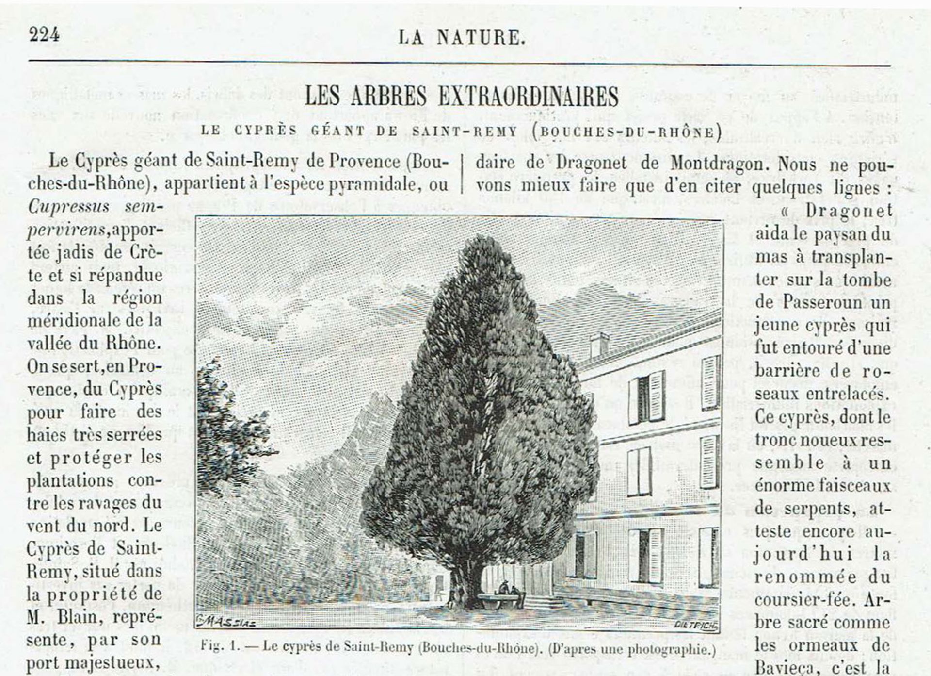 “The Giant Cypress of Saint-Rémy” (at the Gaillard farm, two kilometres from the asylum), published in La Nature, 4 March 1893