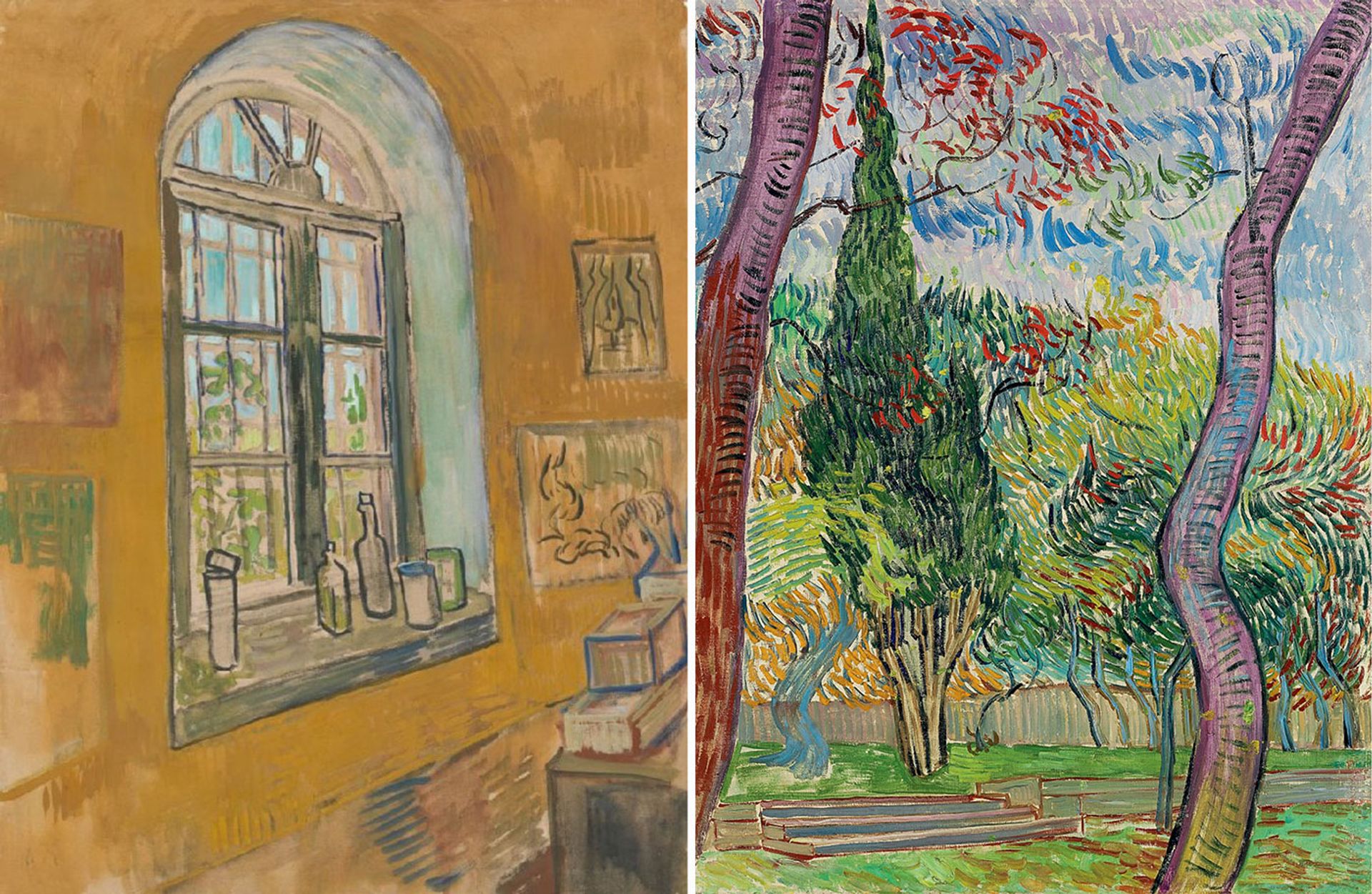 Van Gogh’s Window in the Studio (September-October 1889) and Trees in the Garden of the Asylum (September-October 1889) Van Gogh Museum, Amsterdam (Vincent van Gogh Foundation) and private collection