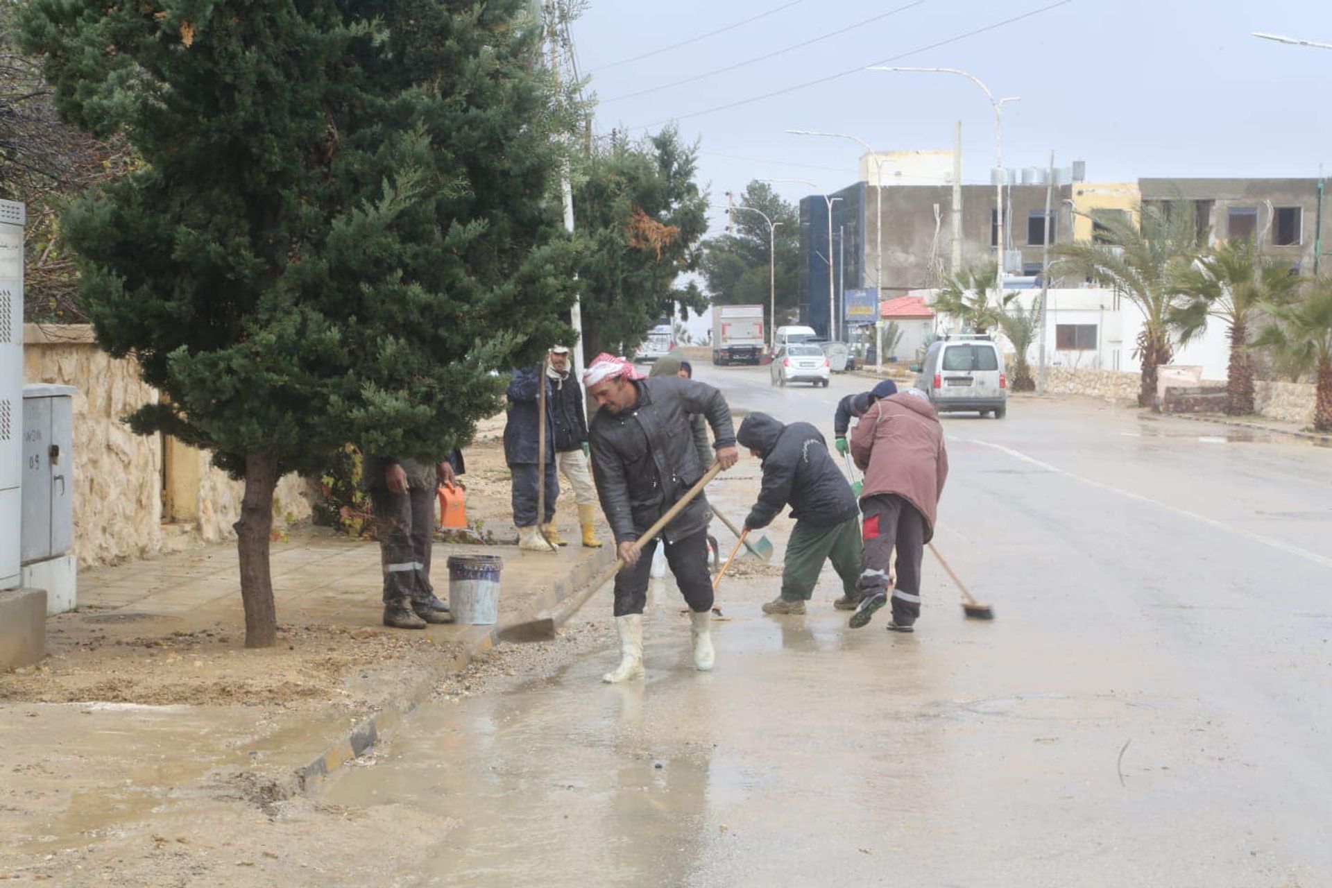 Clearing up the site after rainfall of around 80 millimetres Courtesy Petra Development and Tourism Region Authority