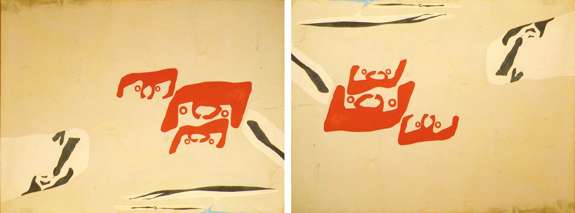 Salvador Dalí, Four Fishermen’s Wives of Cadaqués (1928), the "correct" way up on the right © Salvador Dali, Gala-Salvador Dali Foundation/DACS, London 2022