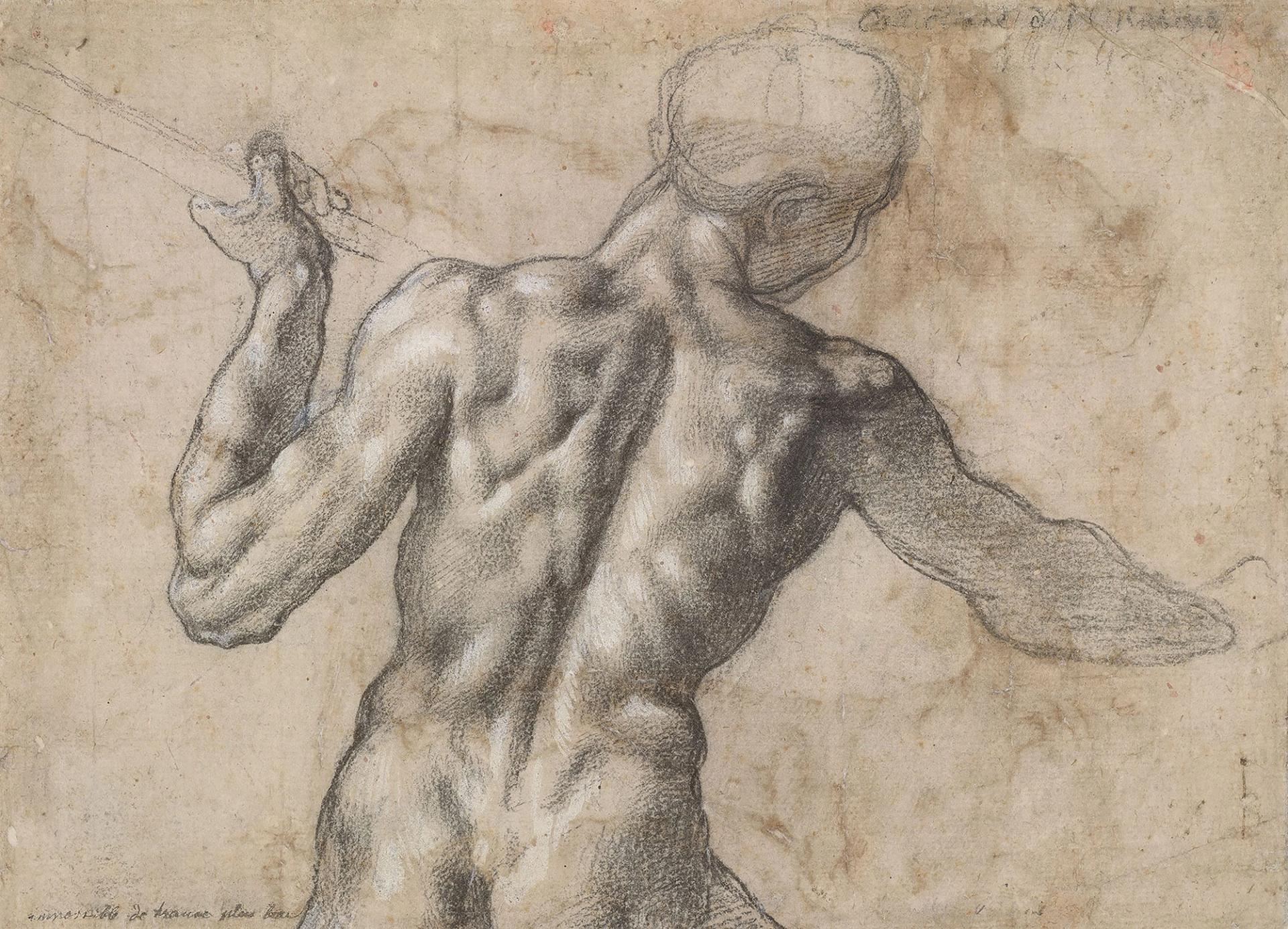 Michelangelo’s Male Nude from Behind (Study for the Battle of Cascina) (around 1504) is one of the show’s centrepiece drawings © The Albertina Museum, Vienna