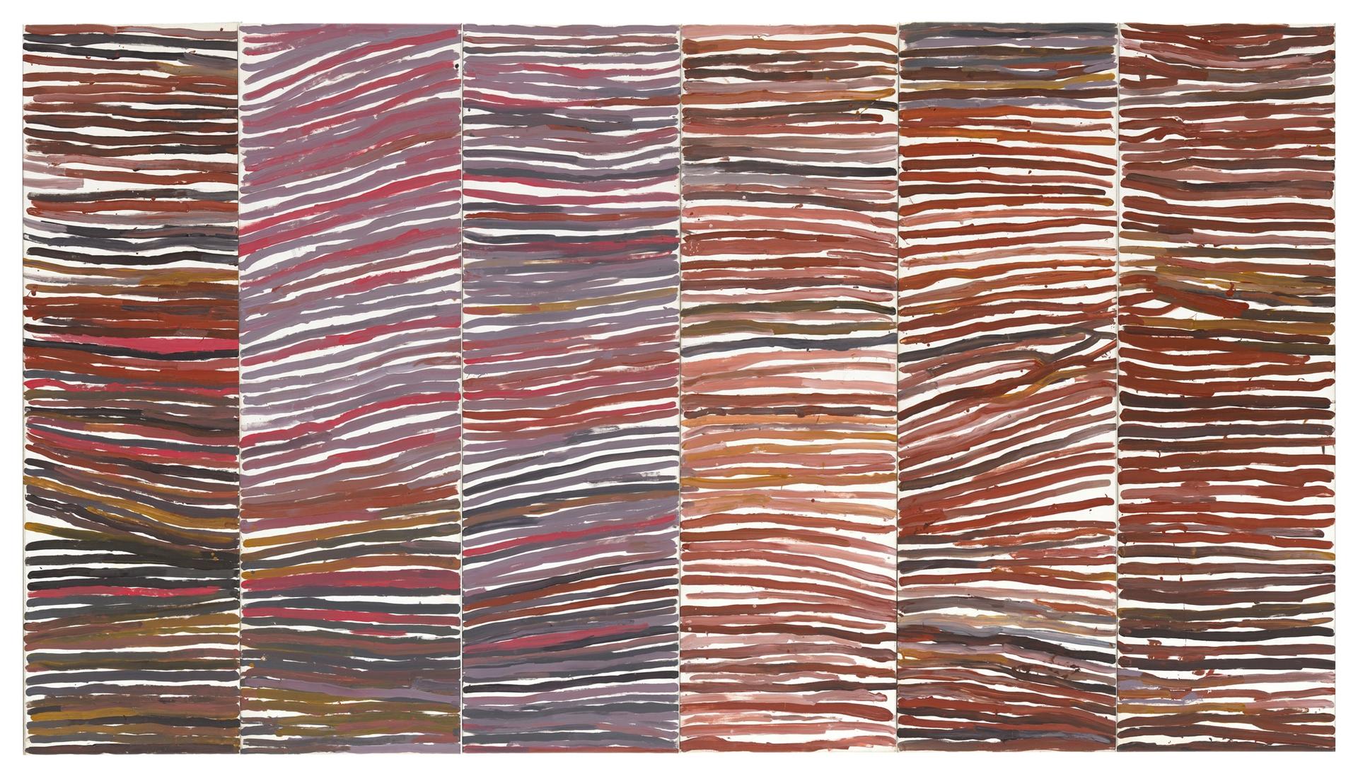 Emily Kame Kngwarreye began painting in earnest at around the age of 78 and produced more than 3,000 pieces before her death seven years later—an average of one a day. The Anmatyerre artist was born and raised in Alhalkere, north of Alice Springs in Australia’s Northern Territory, and her work responded to the patterns and textures of the landscape. Stand in front of the brightly coloured canvases and you will notice seeds, waterways and plants amid the repeated lines and dots.