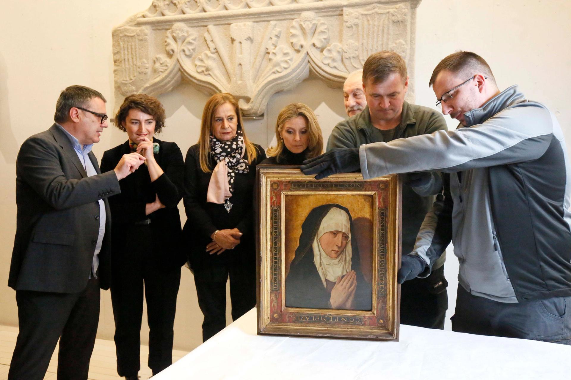 Mater Dolorosa, from the workshop of Dieric Bouts, being inspected Photo: Museo Provincial de Pontevedra in Spain