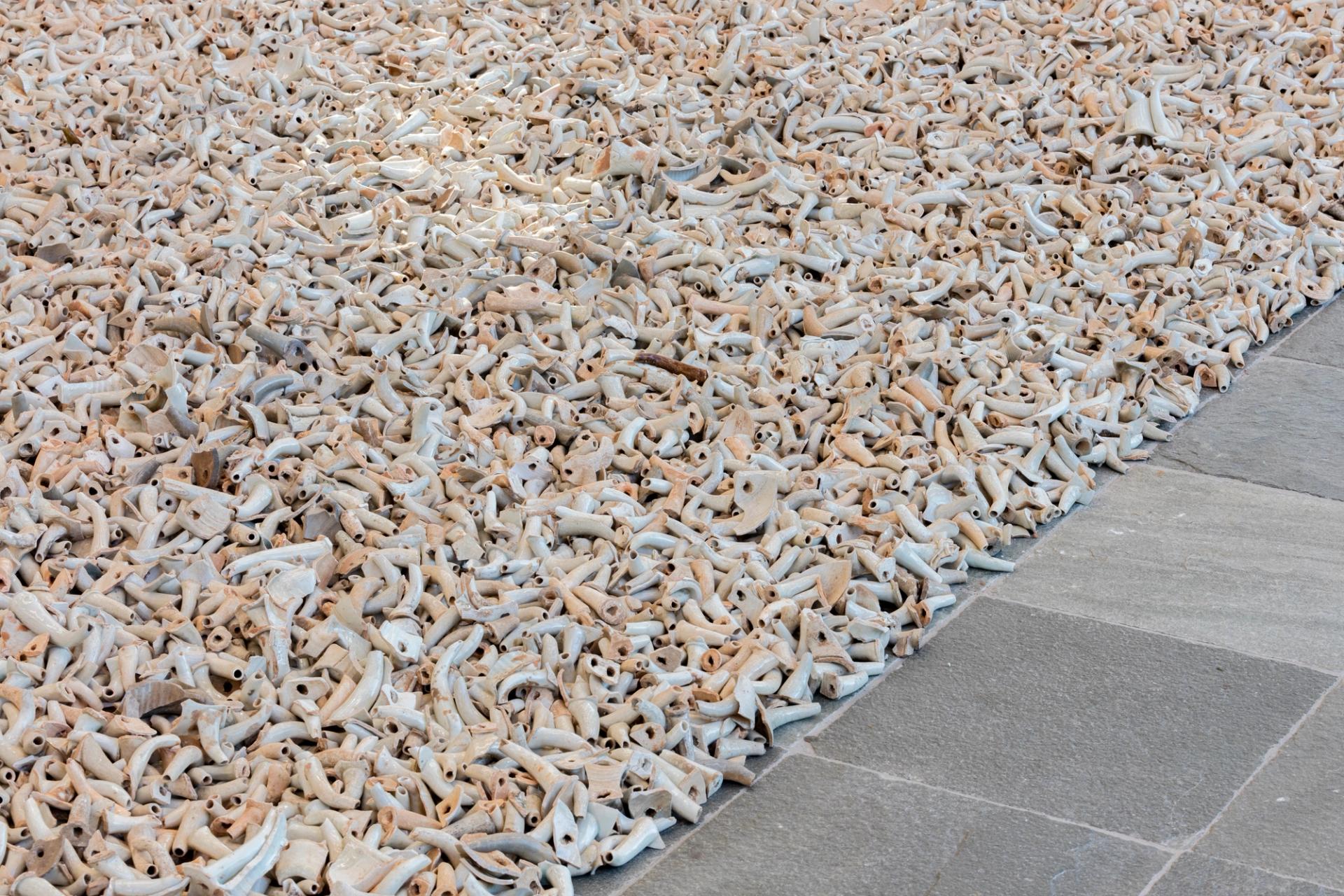 Between the 200,000 porcelain spouts from teapots and wine ewers and the 100,000 porcelain balls alongside them, another of the fields shine a light on ancient handcrafted works. “We often say modern people do not know how to wash a dish,” Ai said. “In some senses, we are less understanding… about the touch, texture and shape of forms made by human hands.” The field sections in the exhibition will not be cordoned off to visitors.