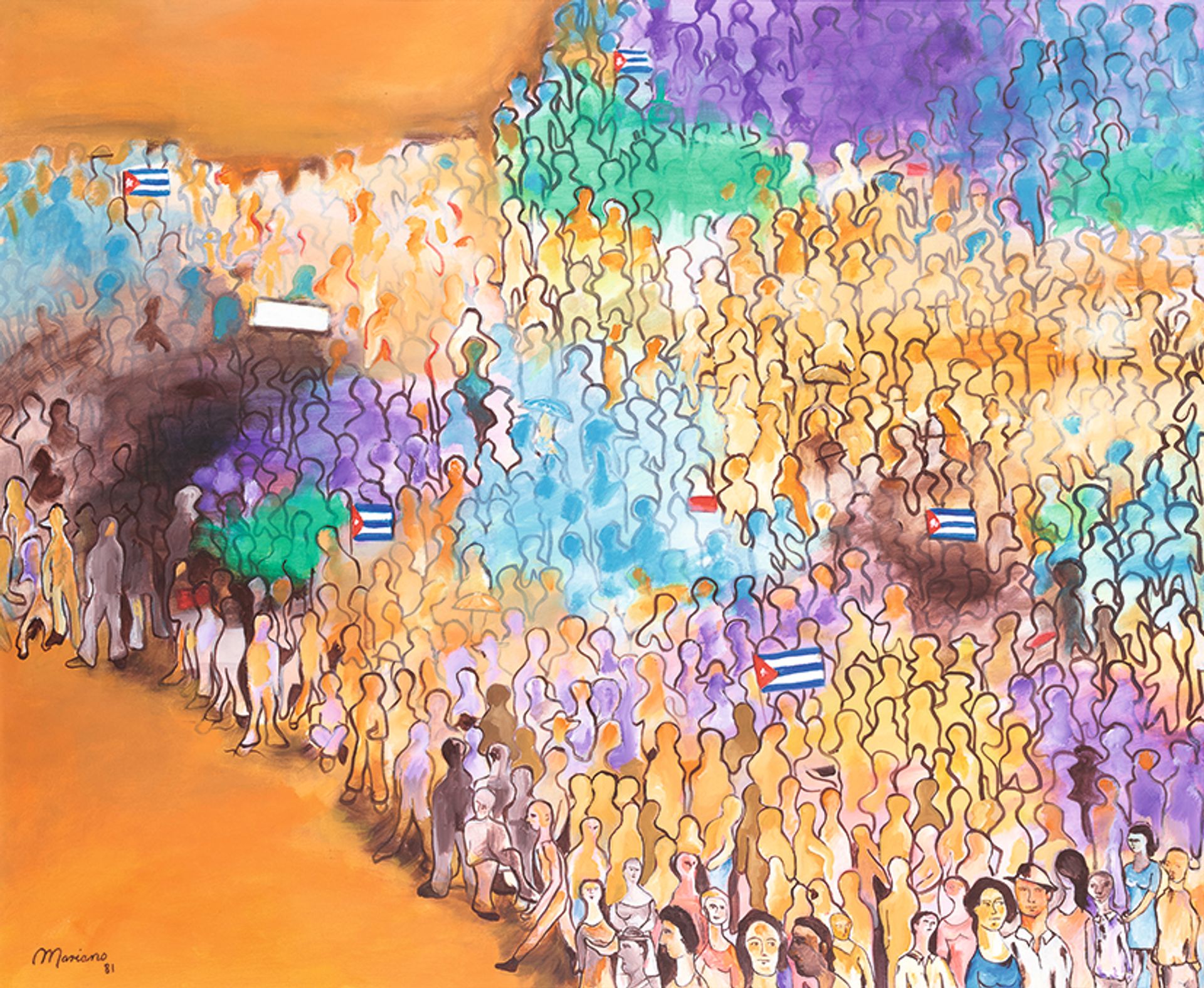 This vibrant scene is by the Cuban artist Mariano Rodriguez (1912-90), whose work frequently explored his country’s national identity. Following the closure of a major exhibition last month, this lot at the Pérez Art Museum Miami, this lot is likely to be on the radar of a growing field of collectors. “The geometric abstractions of Los Concretos artists, with their universality, have been driving much of the interest in the Cuban art market,” says Andrew Huber, the head of post-war and contemporary art at Bonhams, New York. “Yet there is strength elsewhere, including with the Vanguardia [Cuban avant-garde] artists such as Rodriguez. [This painting] is a late career example that is notable for its explicit illustration of national pride and identity. Whereas the aforementioned abstractions lack any obvious connection to the island aside from perhaps materials used, Rodriguez has foregrounded Cuba, dotting the canvas with Cuban flags. He has further laid bare his communist ideals by transforming a group of individuals into a swirling mass of colour and form.”