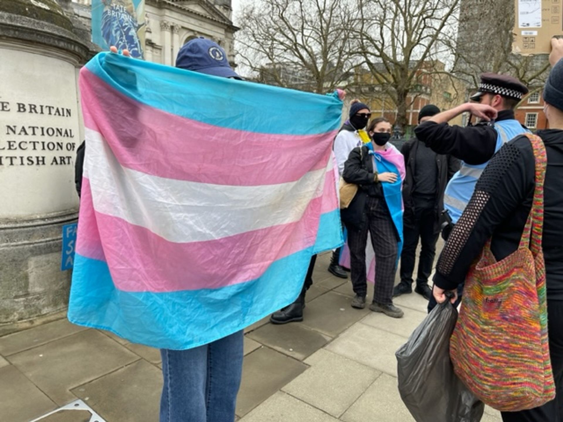 Trans rights protesters were joined by other equality campaigners including anti-racism and anti-fascist groups